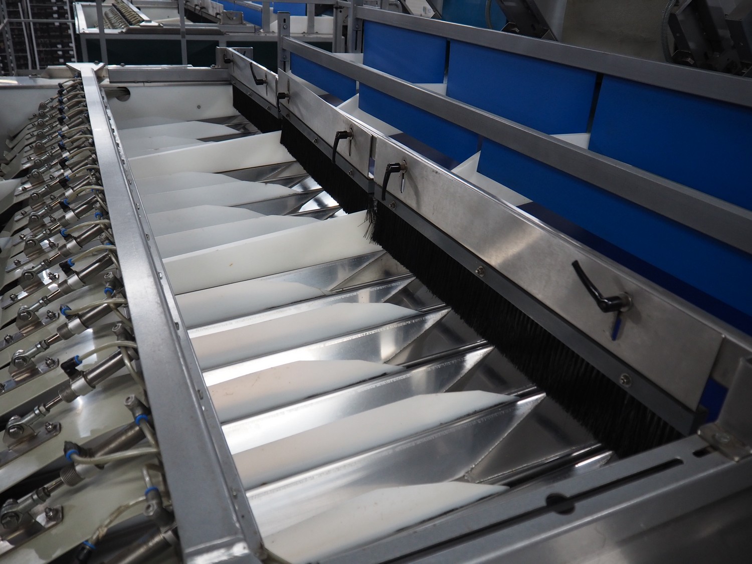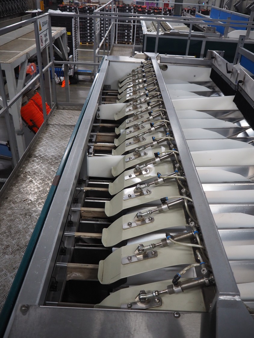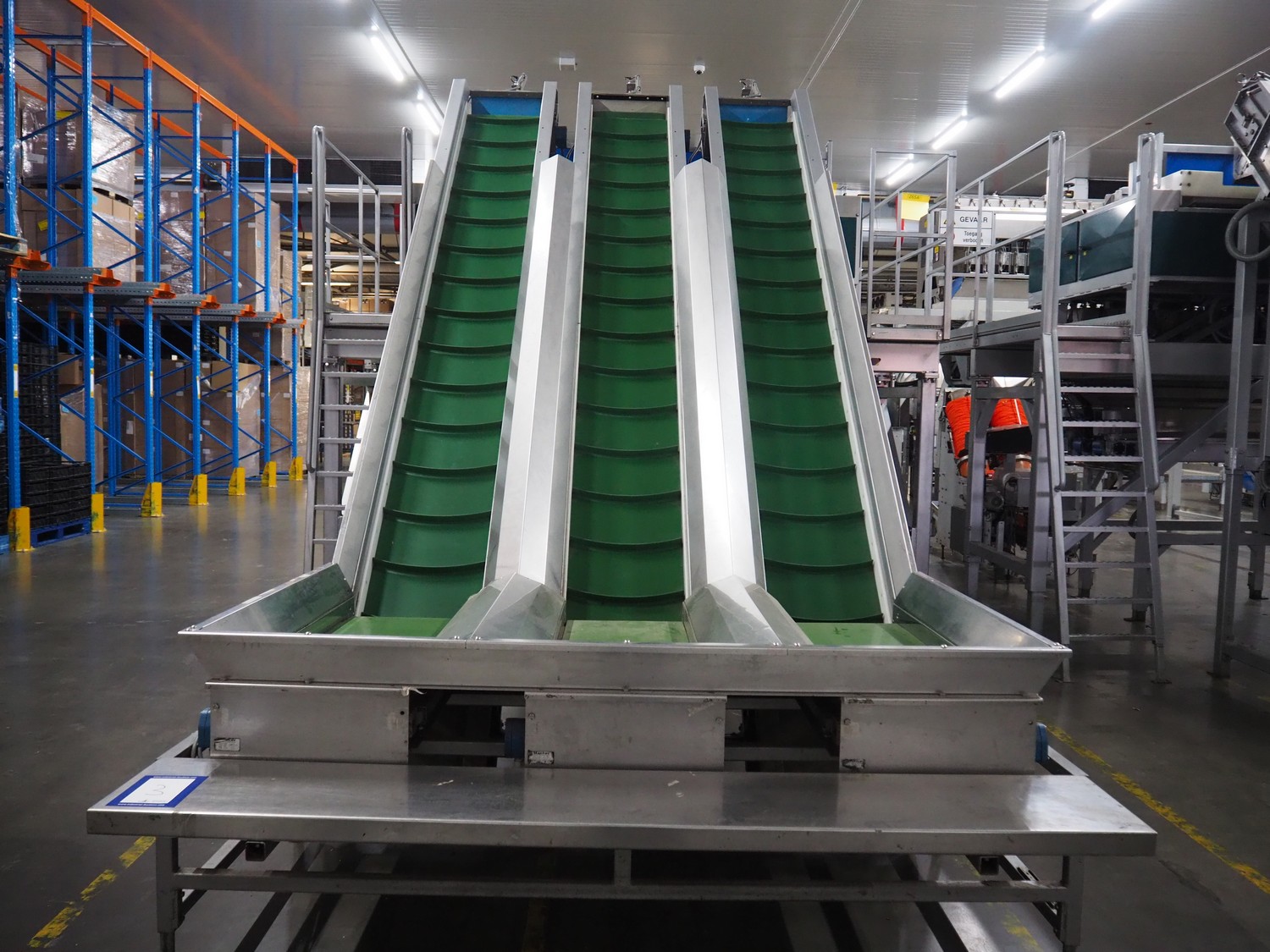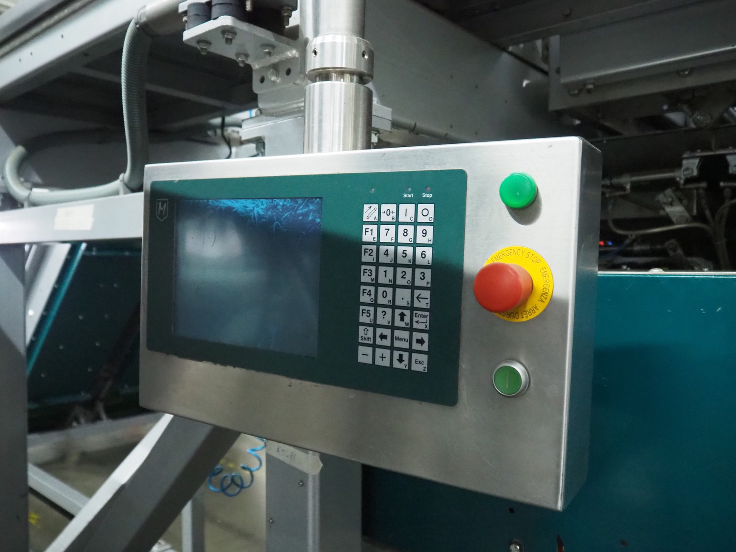 Manter linear weighing machine, type: 16000 Mix, machine number: 211-034, year of construction: 2011, 16 lanes, lane width: (16x) 140 mm, 2 outfeed belts, belt width: (2x) 150 mm, dimensions linear weighing machine: 4800 mm x 3200 mm x 3150 mm, elevating infeed belt, 3 lanes, plastic belt with dividers, belt width: 445 mm, divider height: 40 mm, distance between divides: 240 mm, elevating height: 2900 mm, dimensions elevating belt: 5200 mm x 2400 mm x 3700 mm.