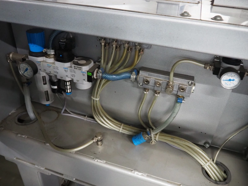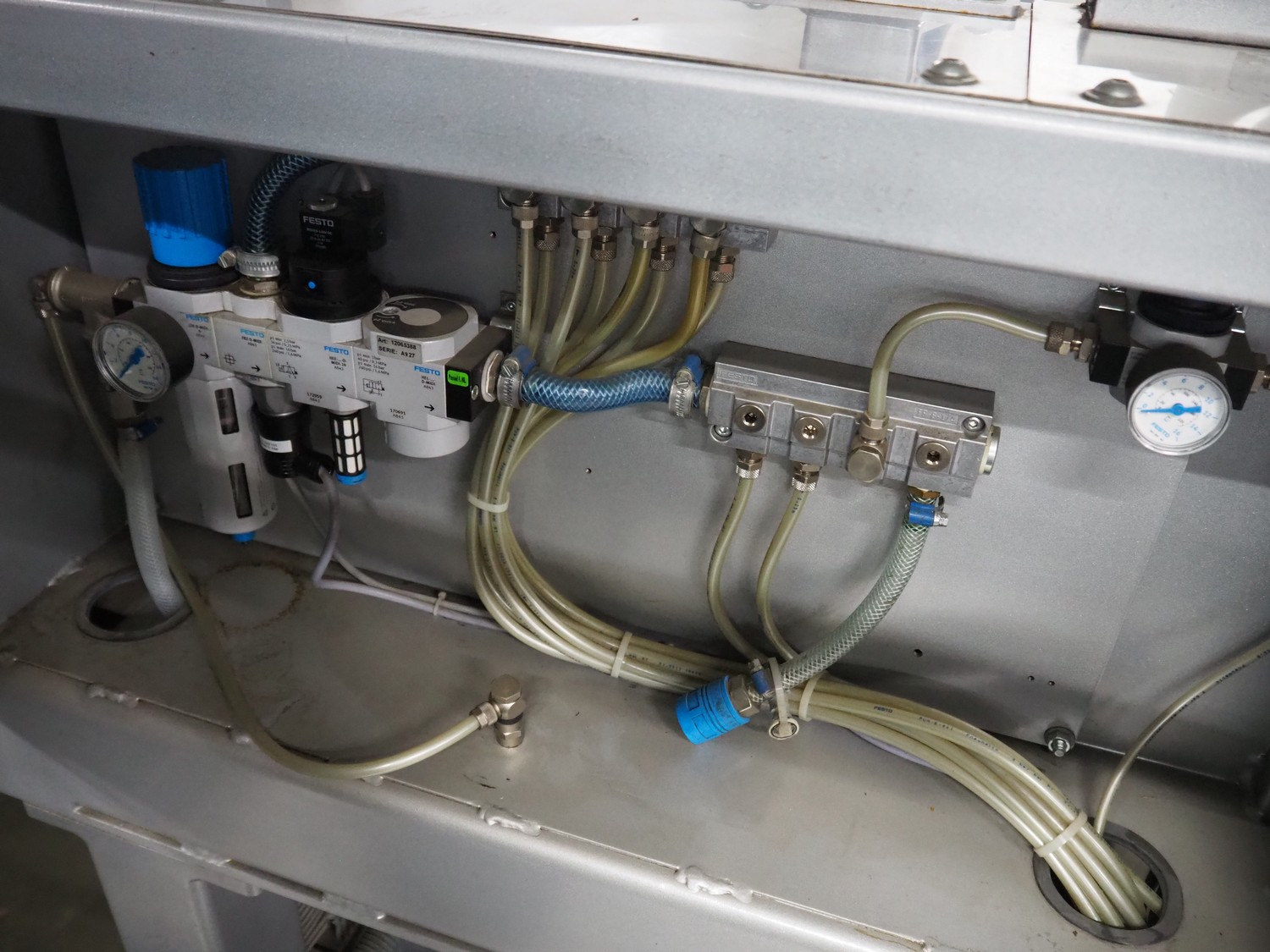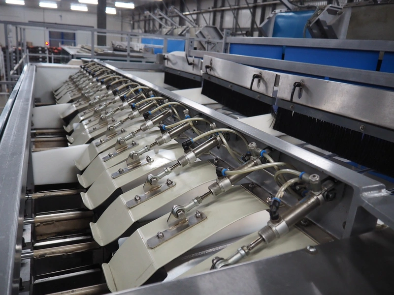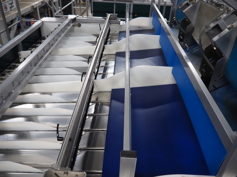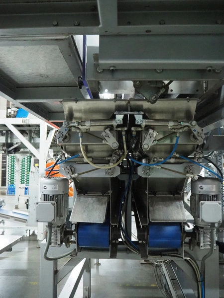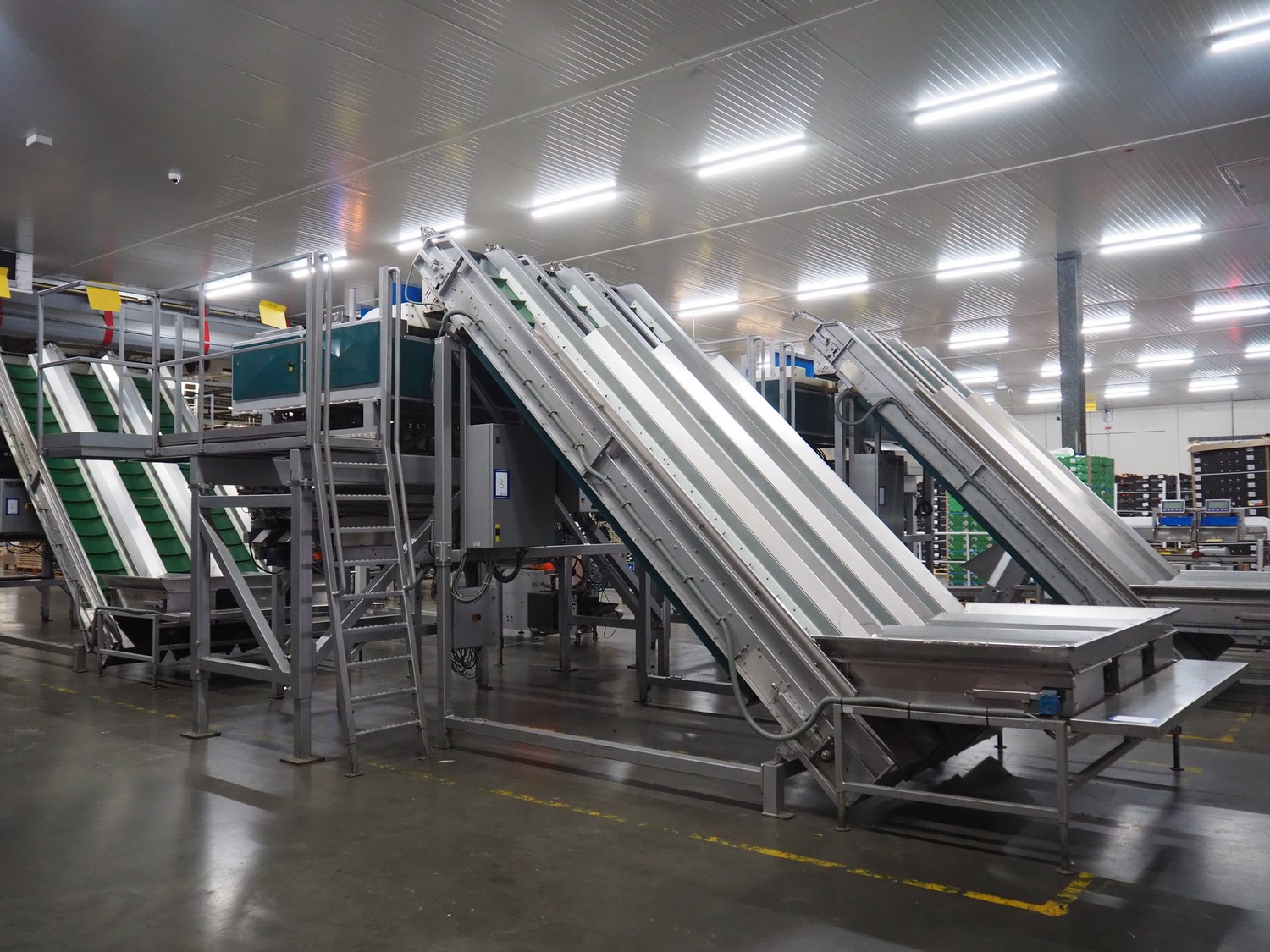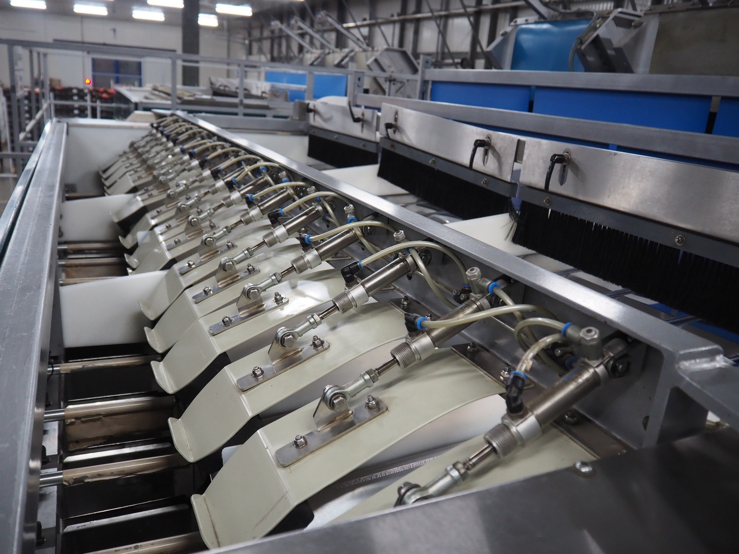 Manter linear weighing machine, type: 16000 Mix, machine number: 211-034, year of construction: 2011, 16 lanes, lane width: (16x) 140 mm, 2 outfeed belts, belt width: (2x) 150 mm, dimensions linear weighing machine: 4800 mm x 3200 mm x 3150 mm, elevating infeed belt, 3 lanes, plastic belt with dividers, belt width: 445 mm, divider height: 40 mm, distance between divides: 240 mm, elevating height: 2900 mm, dimensions elevating belt: 5200 mm x 2400 mm x 3700 mm.