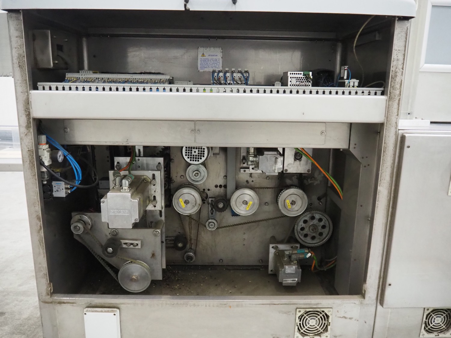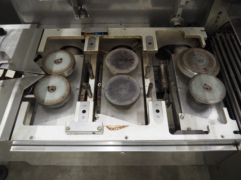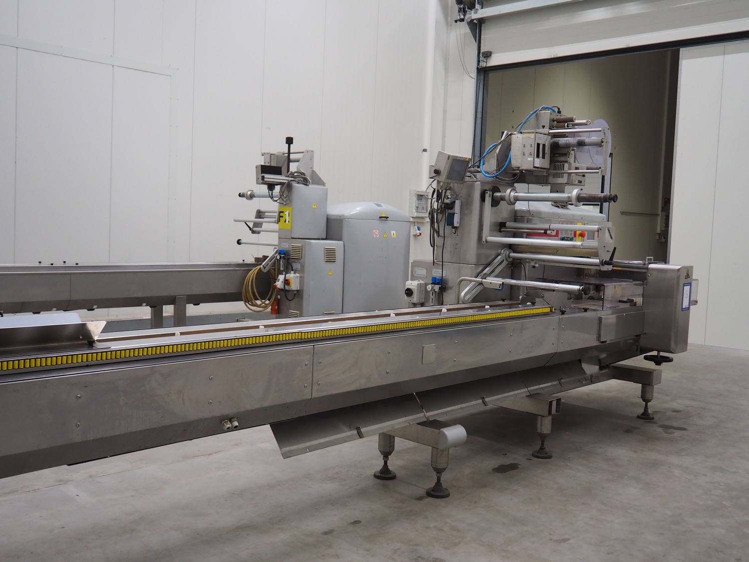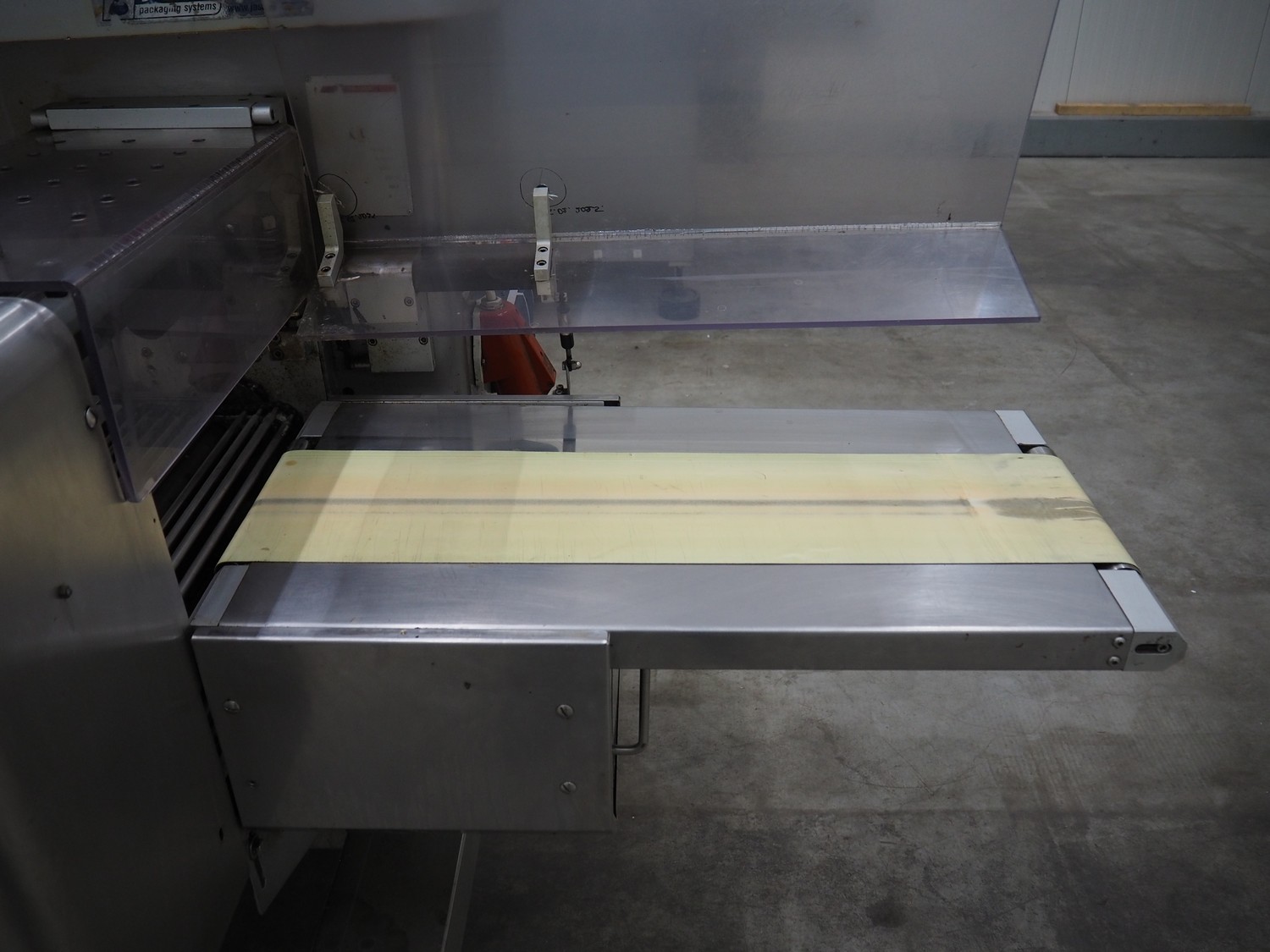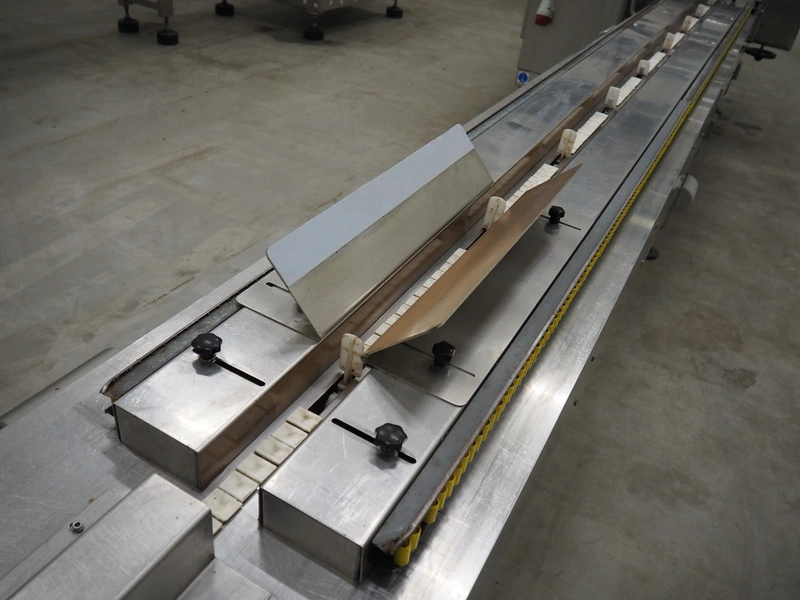 Record flowpacker with VWS Nederland B.V. labelling unit, type: PANDA.MD SP., serial number: 15-06-301, year of construction: 2007, weight: 1050 kg, distance between dividers: 410 mm, seal width: 350 mm, plastic belt, belt width: 210 mm, total dimensions: 6300 mm x 1500 mm x 2250 mm.
