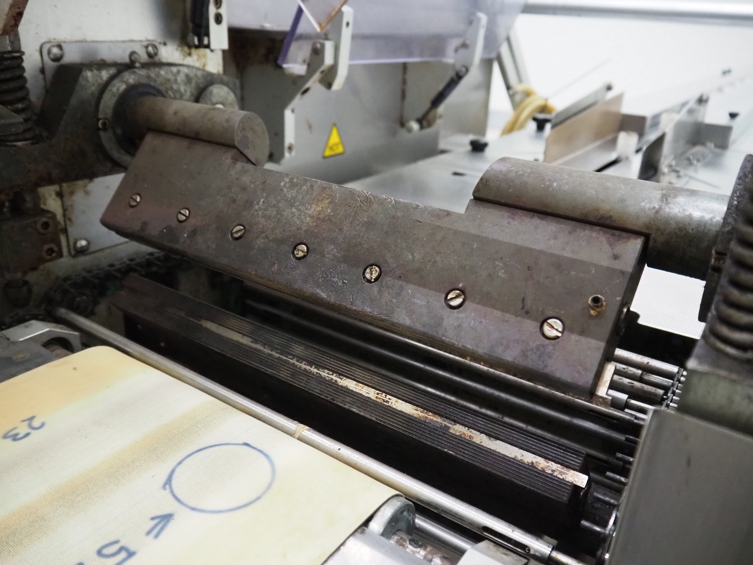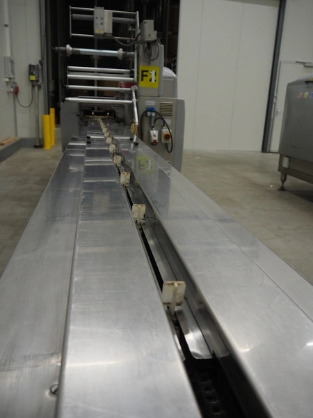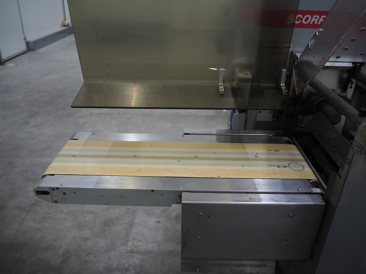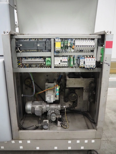Record flowpacker, type: SCORPION E S., serial number: 09-06-612, year of construction: 2007, weight: 950 kg, 5 kW, distance between dividers: 300 mm, seal width: 350 mm, plastic belt, belt width: 210 mm, total dimensions: 6300 mm x 1500 mm x 2250 mm.
