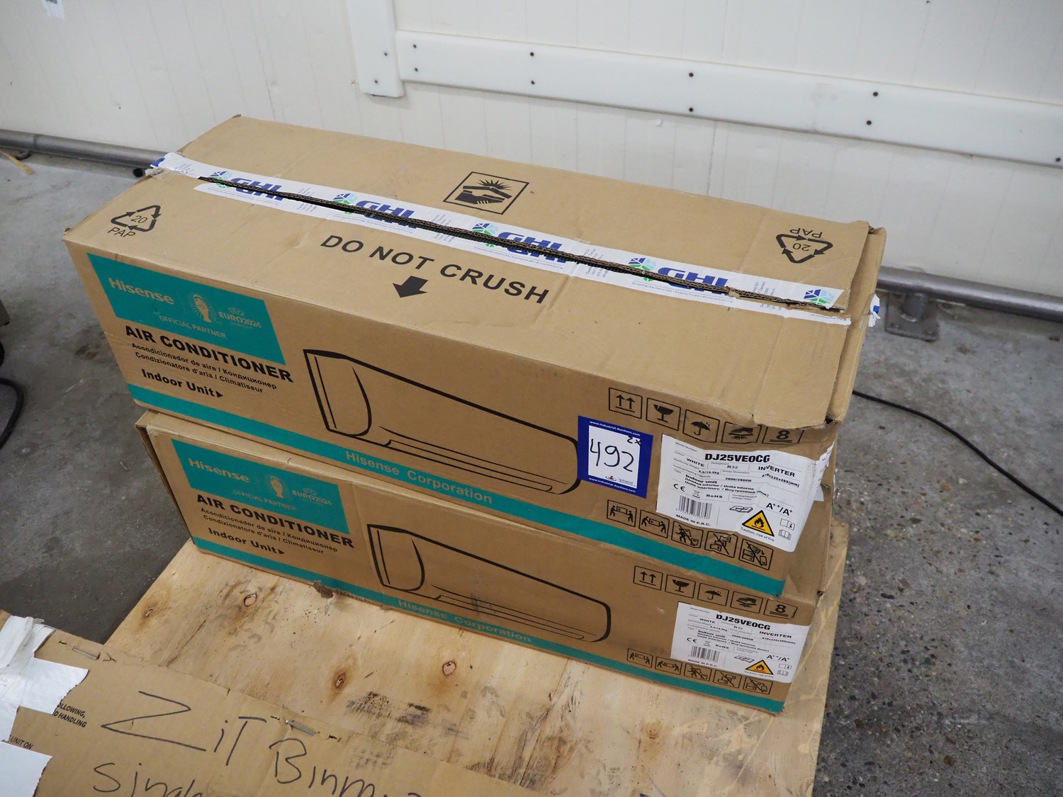 2 Hisense air conditioner, dimensions: (2x) 870 mm x 340 mm x 270 mm.