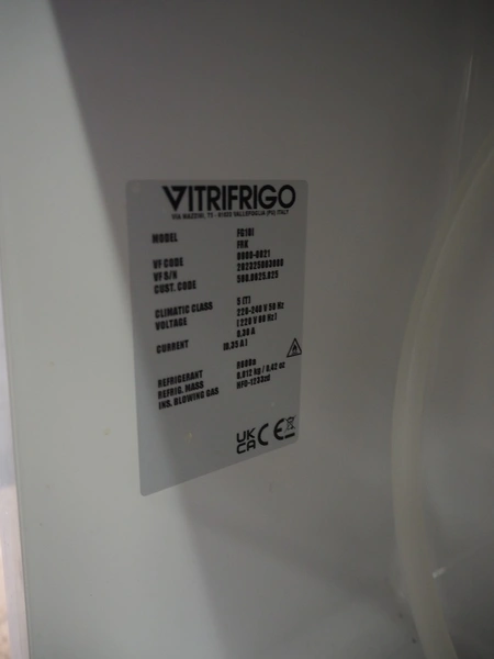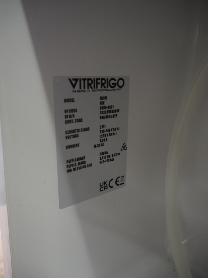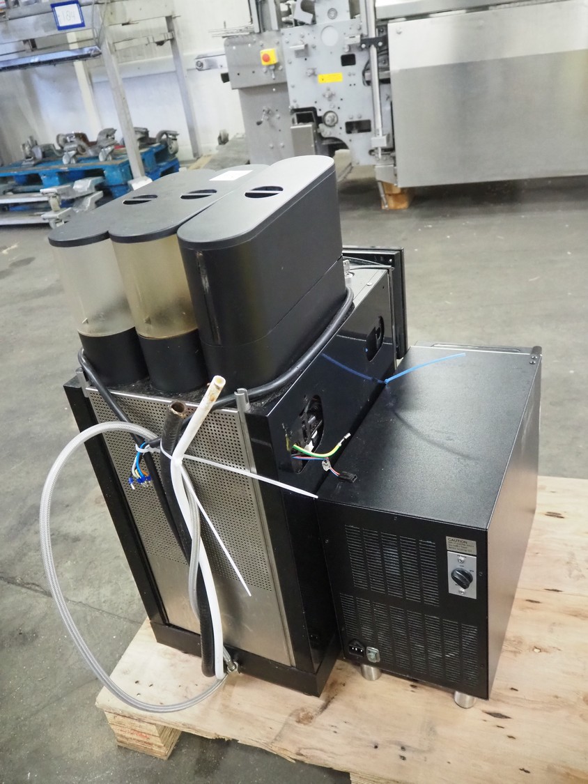 Franke coffee machine with vitrifrigo fridge, model: FG10l, refrigerant: R600a, dimensions: 600 mm x 550 mm x 750 mm.