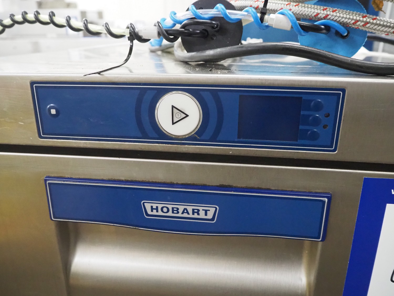 Hobart dishwasher, dimensions inside: 570 mm x 500 mm x 560 mm, total dimensions: 620 mm x 620 mm x 560 mm. Missing cover.