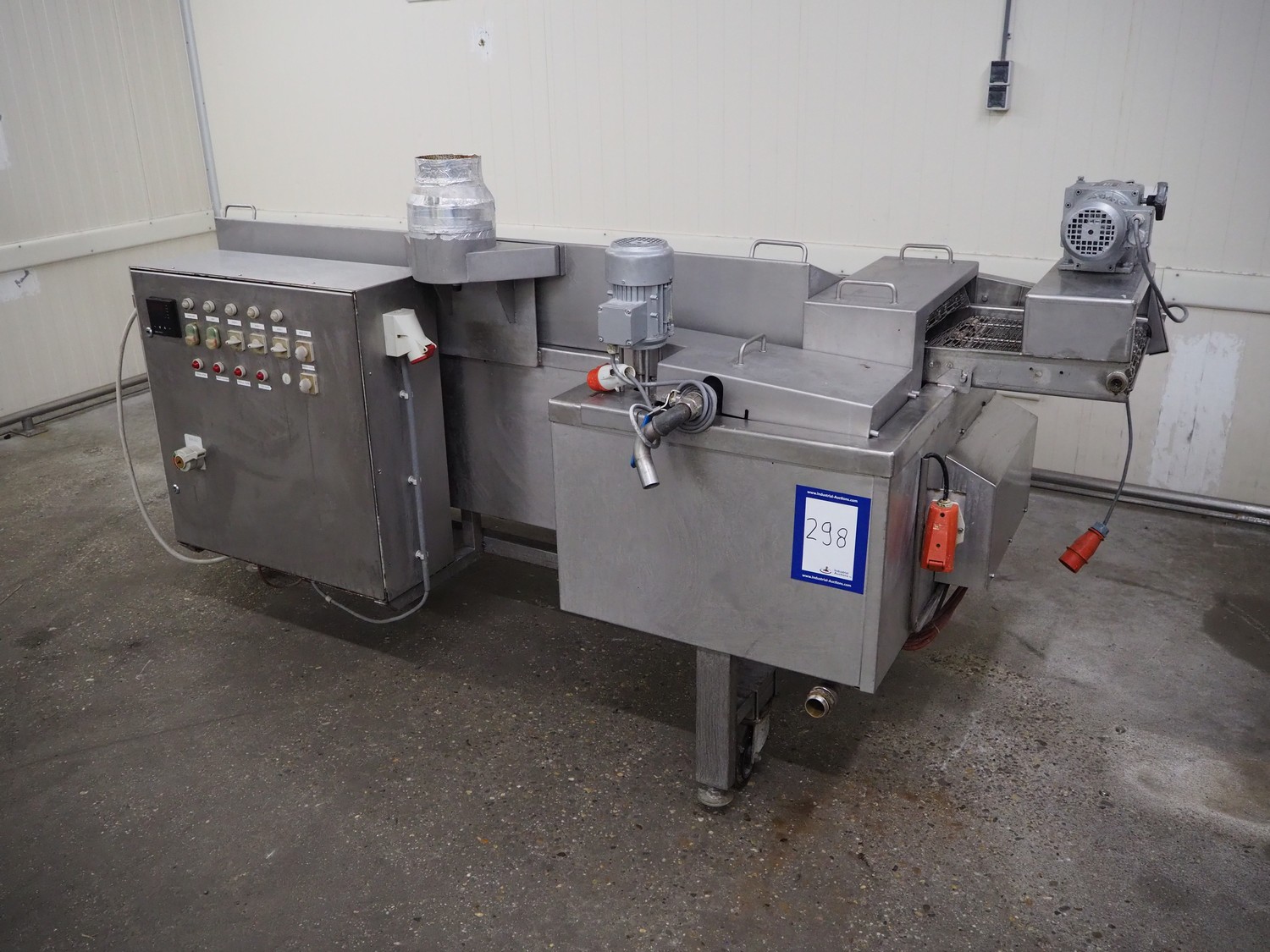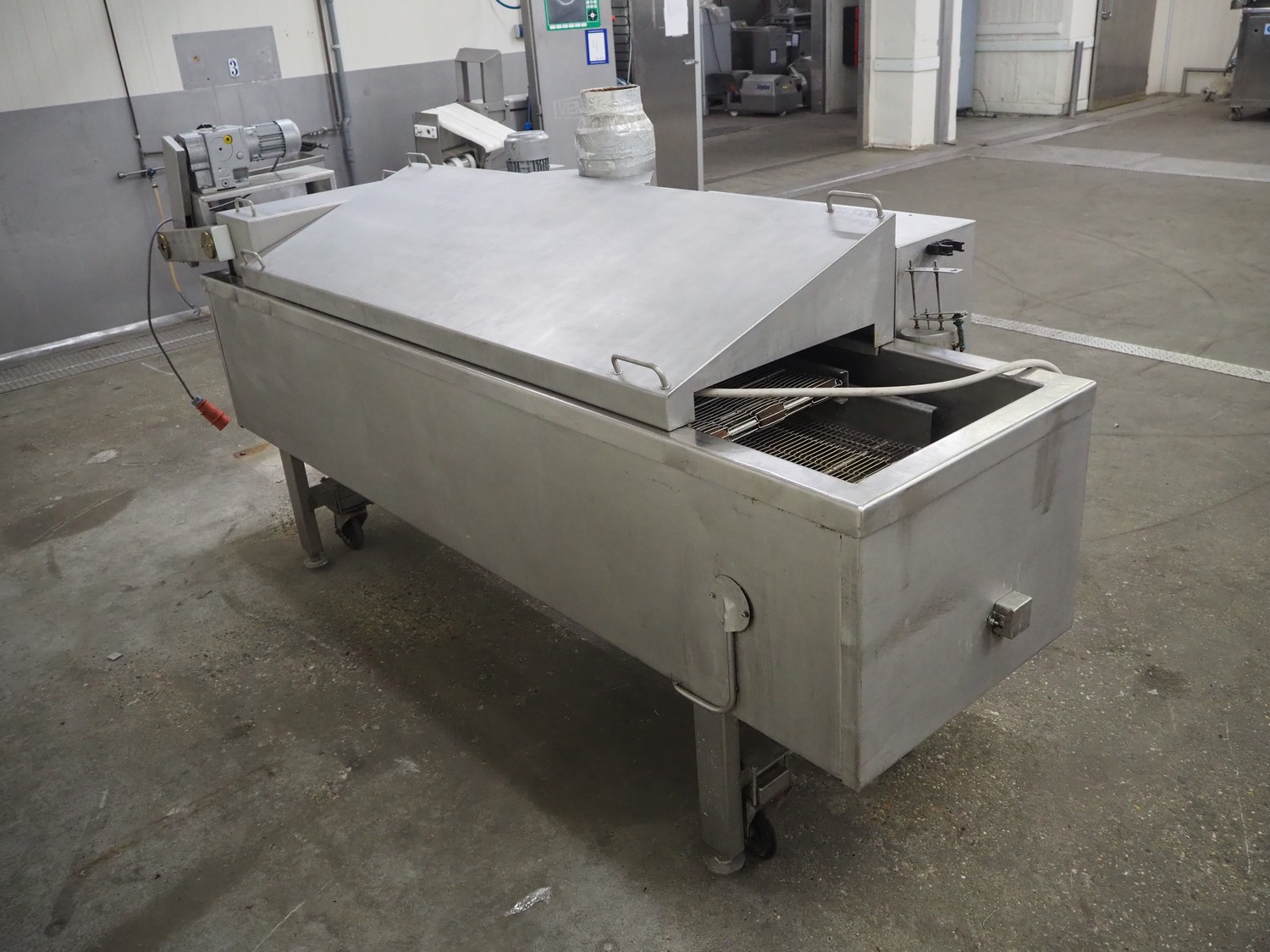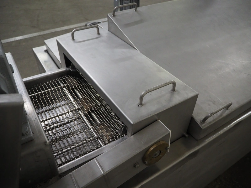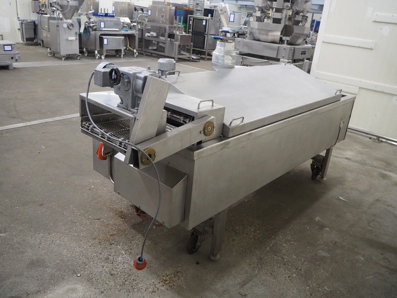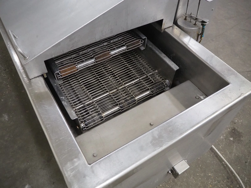 Mobile fryer, s/s mesh belt, belt width: 400 mm, total dimensions: 2900 mm x 1050 mm x 1300 mm.
