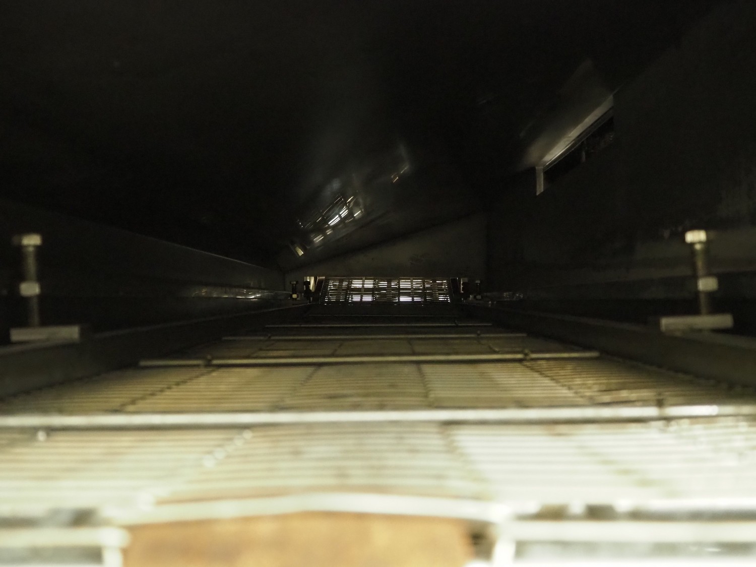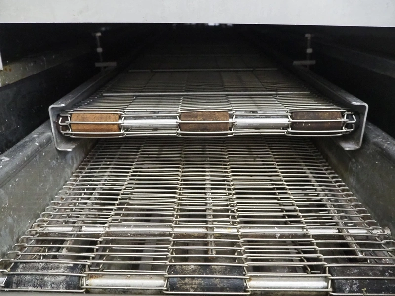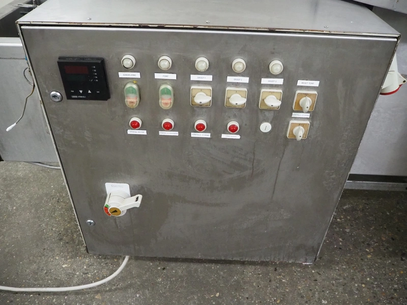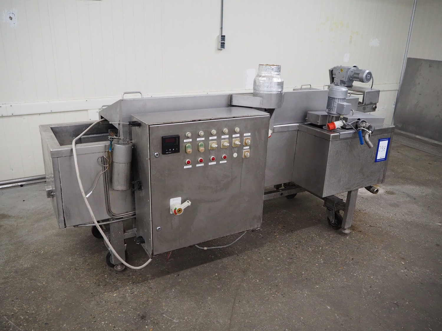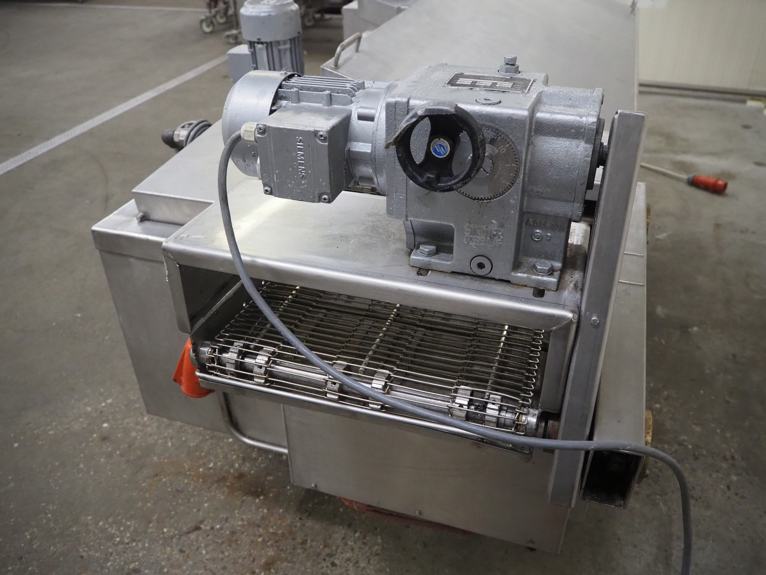 Mobile fryer, s/s mesh belt, belt width: 400 mm, total dimensions: 2900 mm x 1050 mm x 1300 mm.