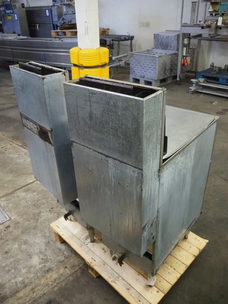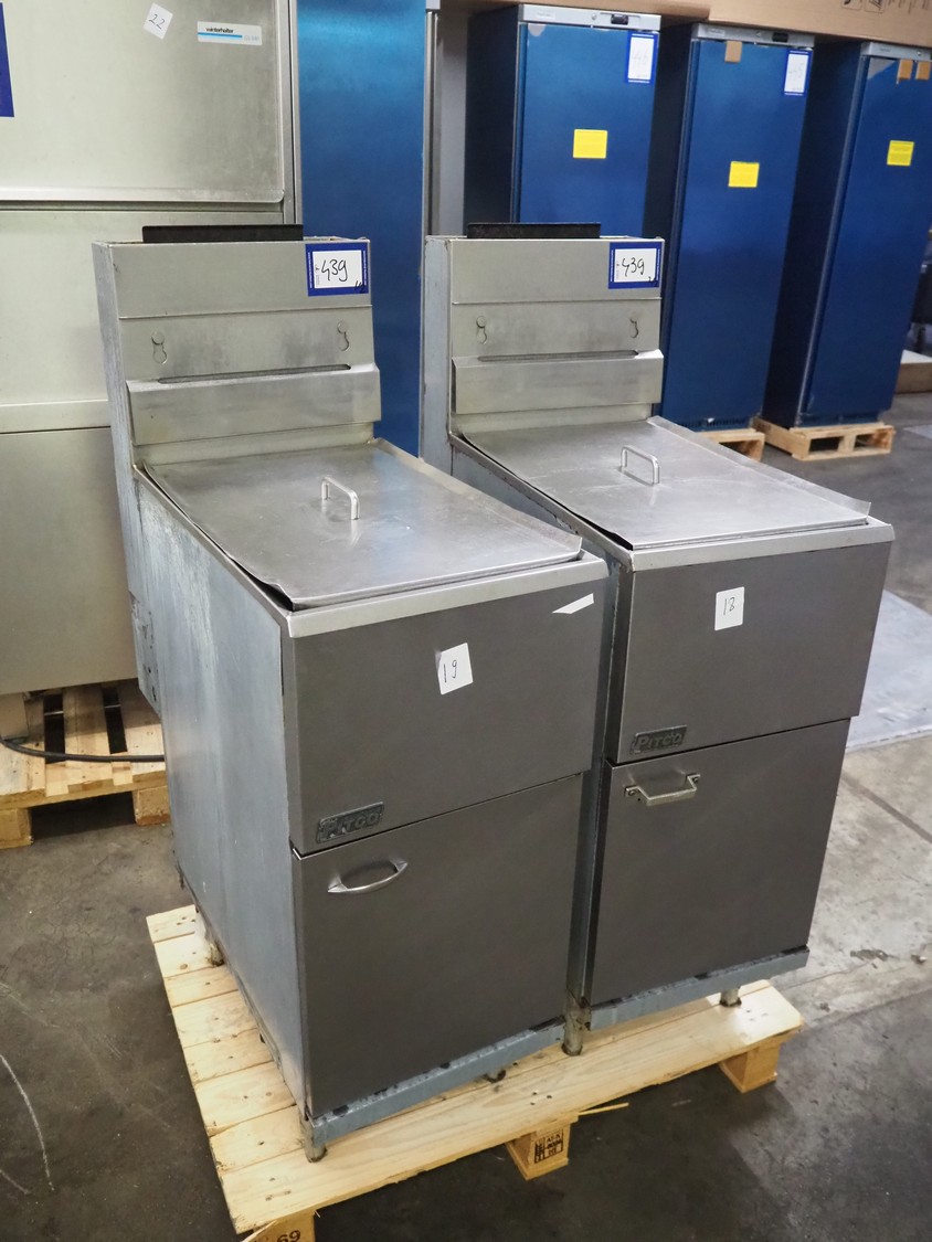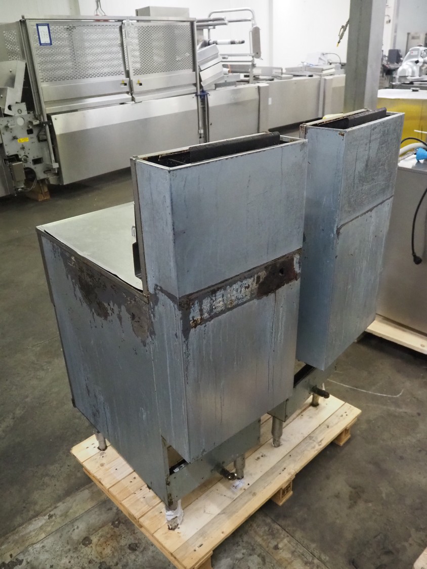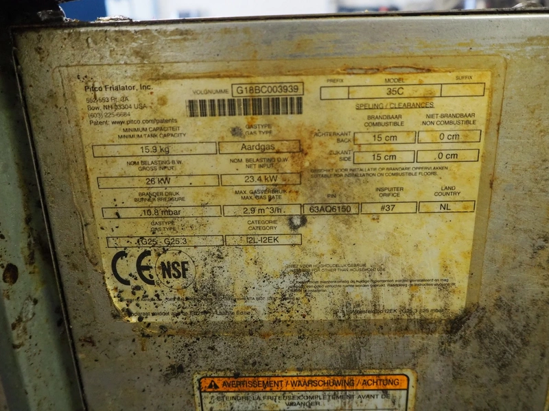 2 Pitco fryers, model: 35C, minimum capacity: 15.9 kg, gas type: G25-G25.3, dimensions inside: 600 mm x 340 mm x 180 mm, total dimensions: 800 mm x 400 mm x 1050 mm.