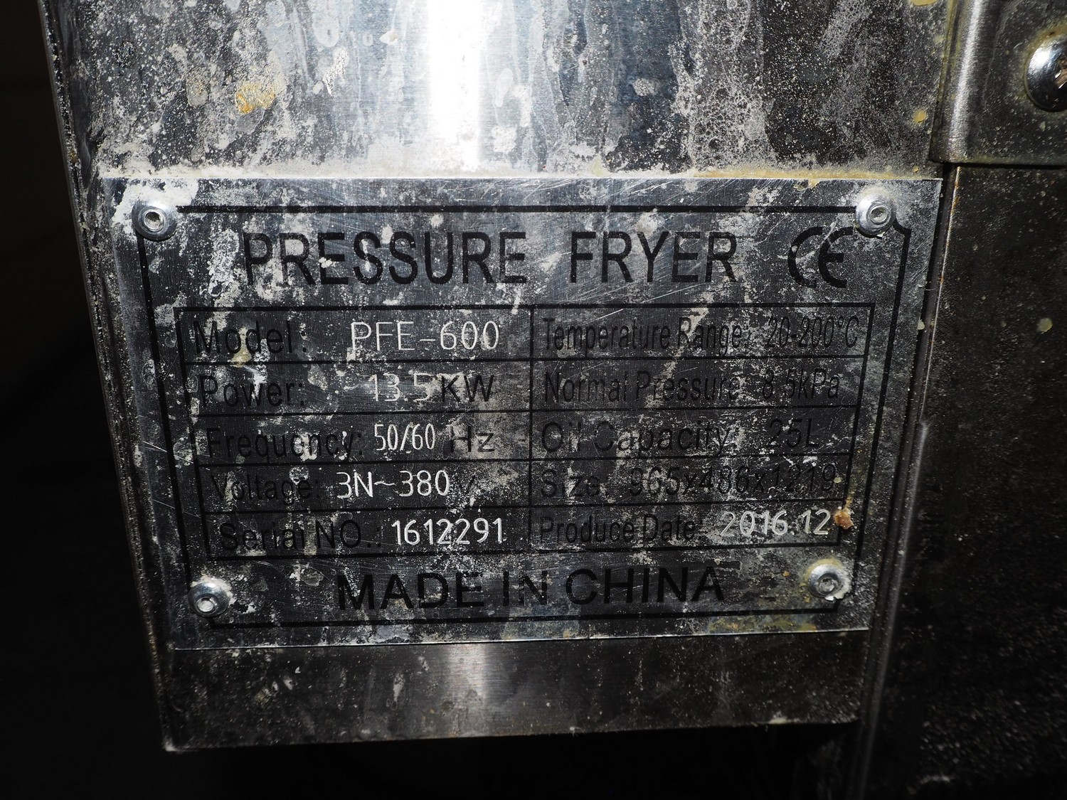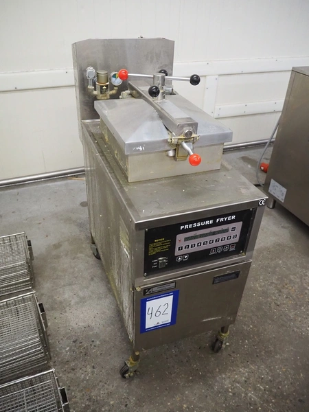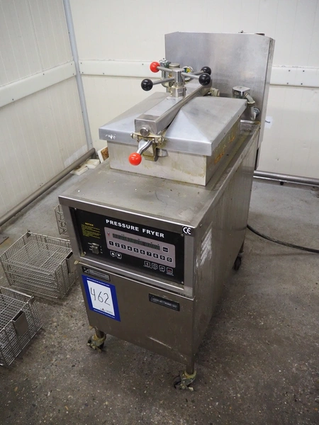 Engelen Heere pressure fryer, model: PFE-600, serial number: 1612291, year of construction: 12.2016, 380 V, 3 Ph, 50/60 Hz, 13.5 kW, oil capacity: 25 liter, dimensions: 960 mm x 460 mm x 1200 mm. Including 4 baskets with 4 floors, dimensions each floor: 295 mm x 240 mm.