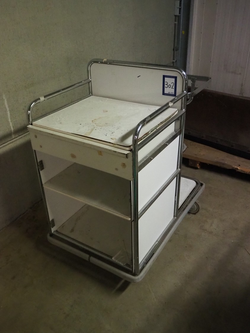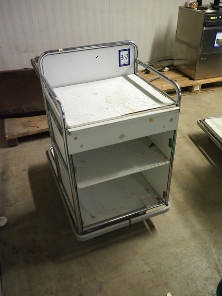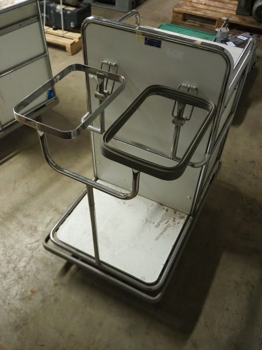 Steel trolley, dimensions: 950 mm x 600 mm x 1080 mm.