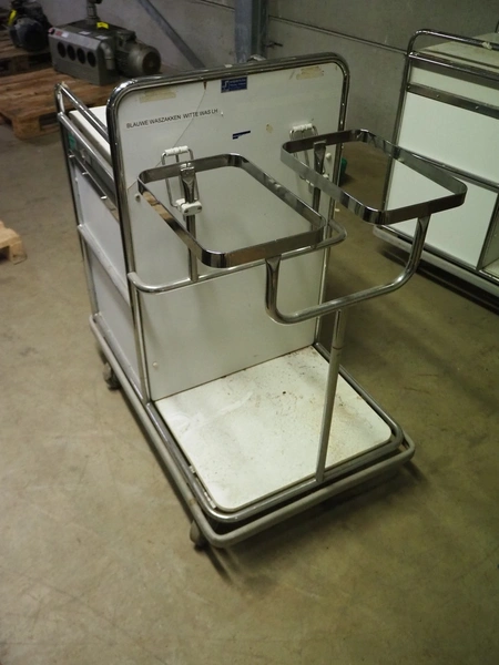 Steel trolley, dimensions: 950 mm x 600 mm x 1080 mm.
