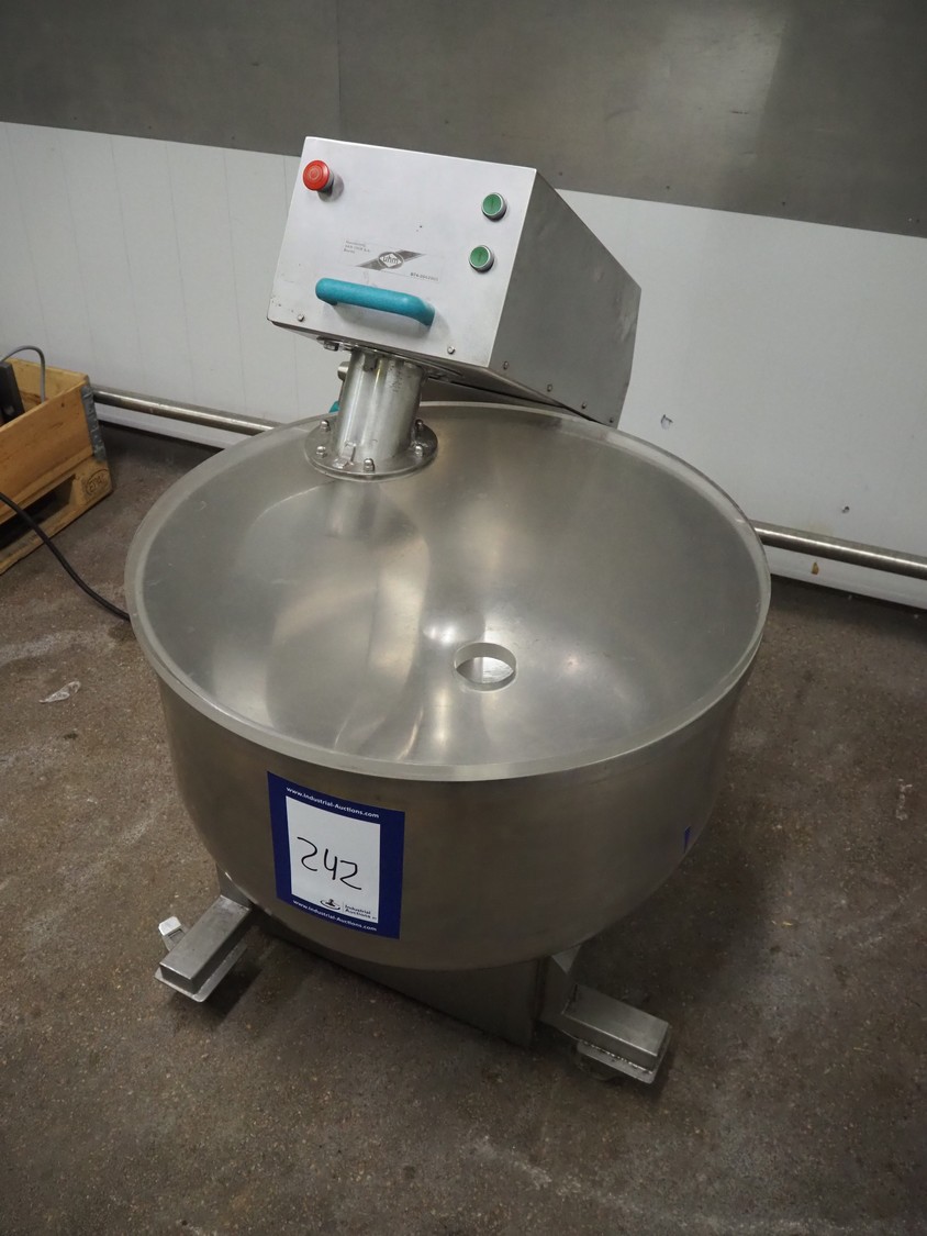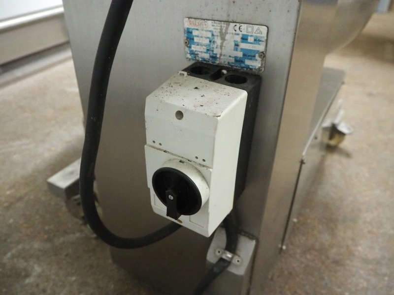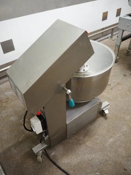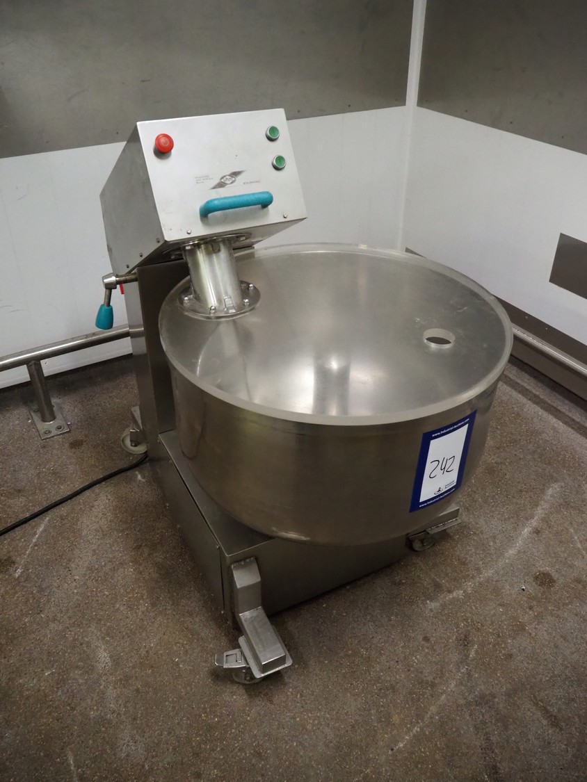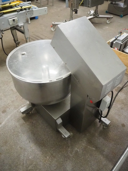 Talsa mobile mixer, model: MIX 150 PT, serial number: 97544, year of construction: 1997, 380 V, 3 Ph, 50 Hz, 14.55 A, 1.65 kW, s/s bowl, volume: 150 liter, total dimensions: 800 mm x 1100 mm x 1200 mm.
