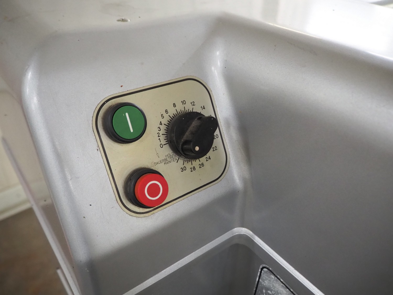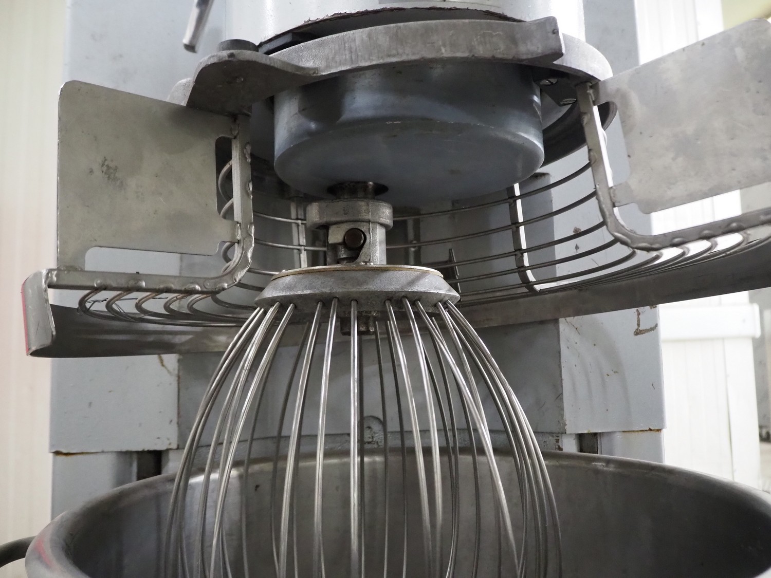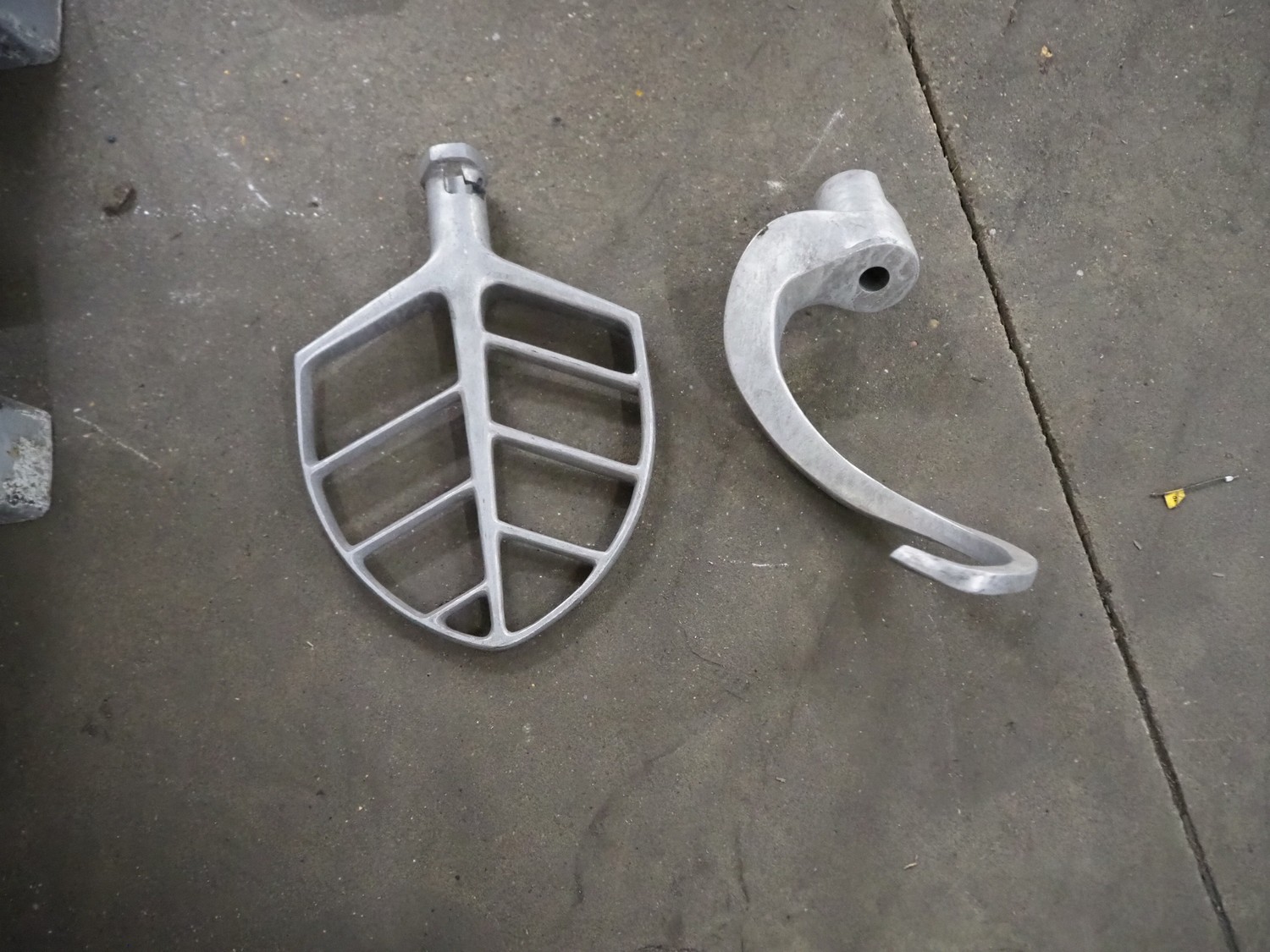 Hobart mixer, model: NCM40, serial number: 97130702, 400 V, 3 Ph, 50 Hz, 2.6 A, 1.1 kW, volume: 40 liter, total dimensions: 700 mm x 560 mm x 1460 mm. Including whisk and mixing arm.