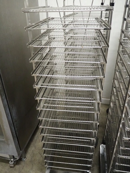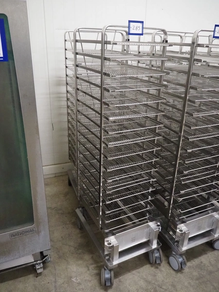 2 S/s trolleys, 16 floors, dimensions each floor: 600 mm x 400 mm, weight: Max 90 kg, total dimensions: (2x) 750 mm x 500 mm x 1700 mm.