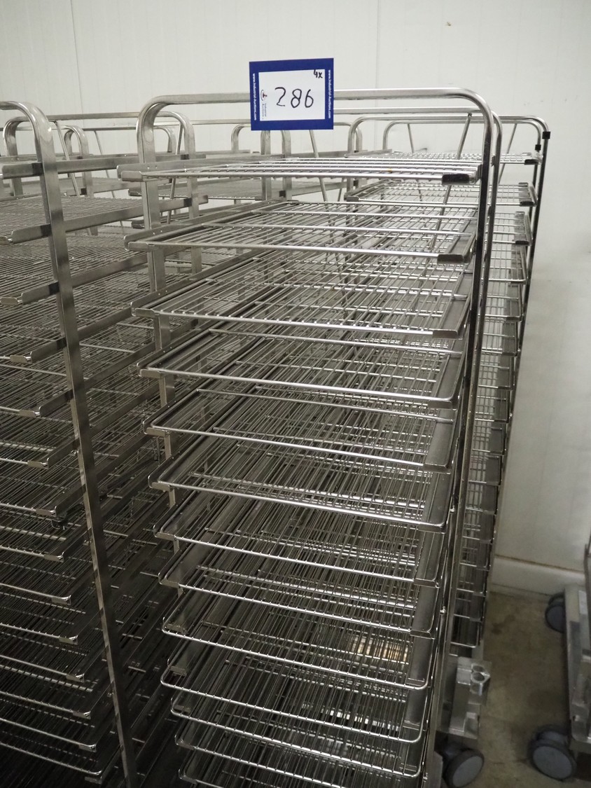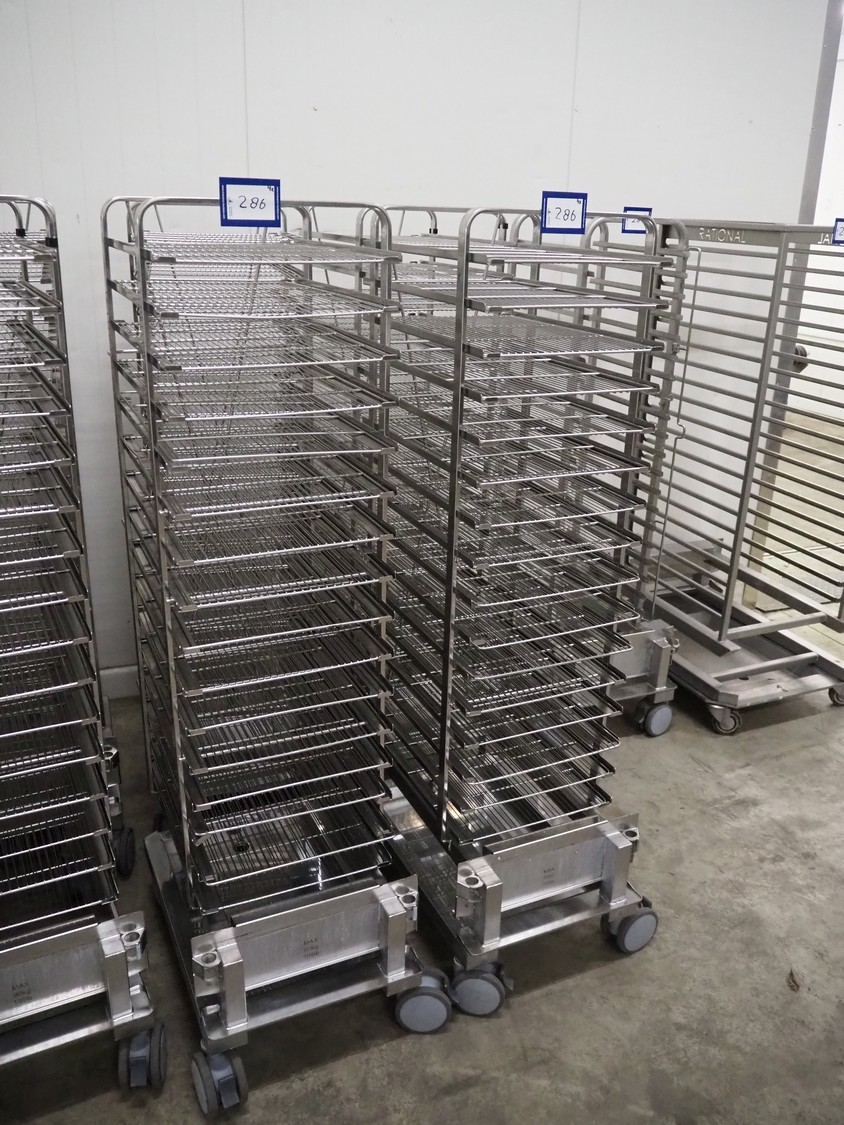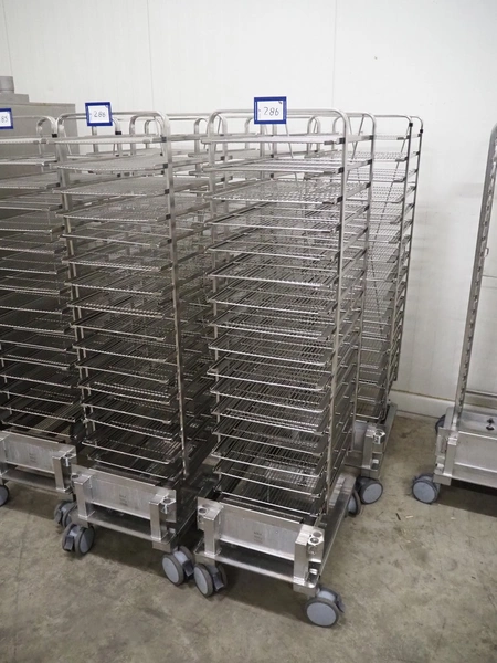 4 S/s trolleys, 16 floors, dimensions each floor: 600 mm x 400 mm, weight: Max 90 kg, total dimensions: (4x) 750 mm x 500 mm x 1700 mm.
