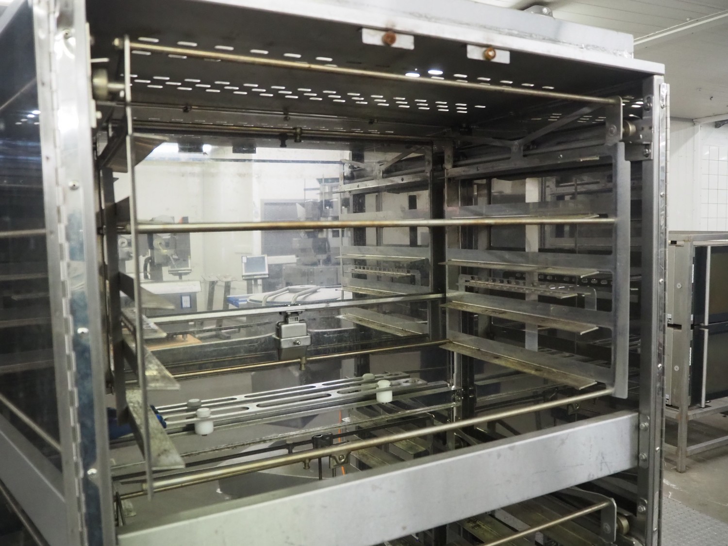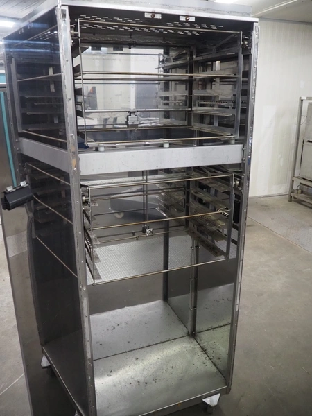 DEBAG loading trolley for oven, type: ZBL000164-E, serial number: P-00-0756, 10 floors, dimensions each floor: 620 mm x 355 mm, total dimensions: 765 mm x 530 mm x 1985 mm.