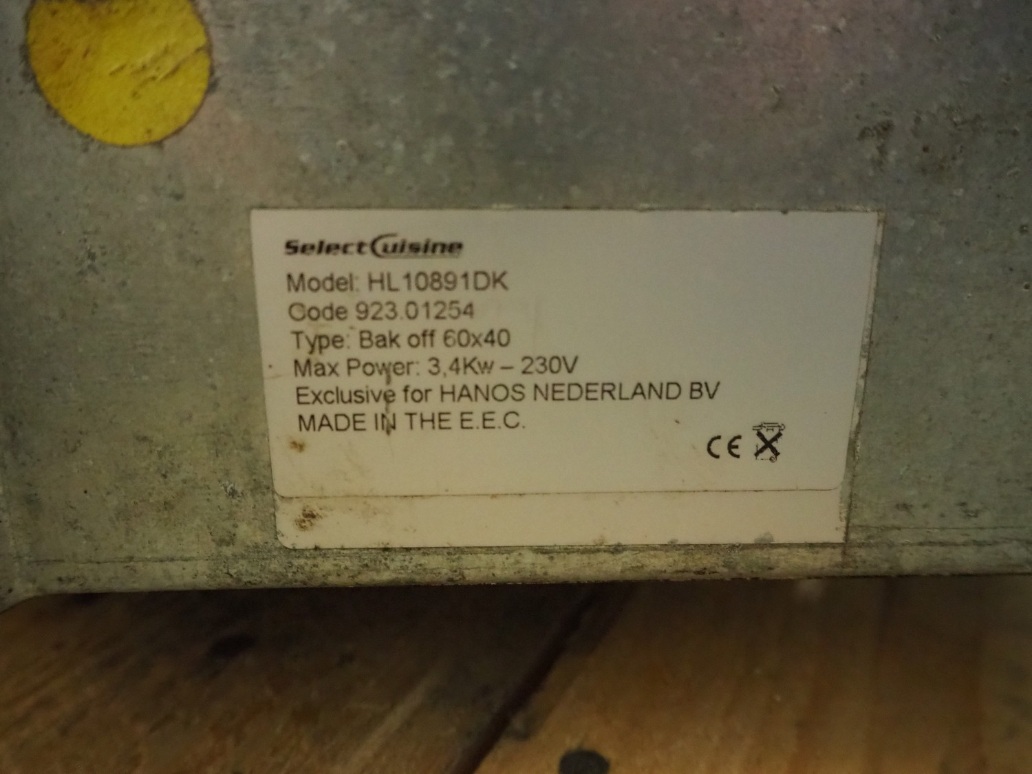 Select Cuisine oven, model: HL10891DK, type: Bak off 60x40, 230 V, 3.4 kW, 4 floors, dimensions each floor: 650 mm x 500 mm, total dimensions: 900 mm x 750 mm x 500 mm.