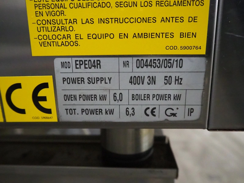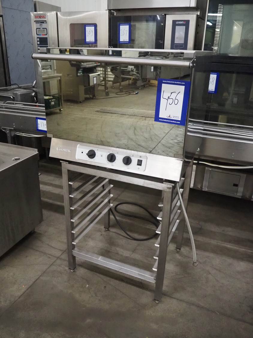 Giorik oven, model: EPE04R, number: 004453/05/10, 400 V, 3 Ph, 50 Hz, 6 kW, 4 floors, dimensions each floor: 605 mm x 380 mm, total dimensions: 800 mm x 770 mm x 1520 mm.