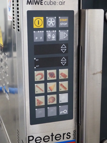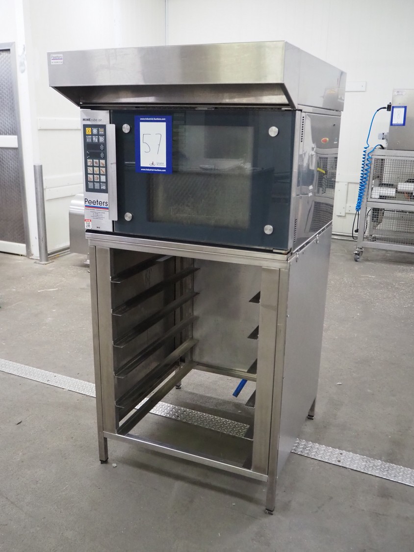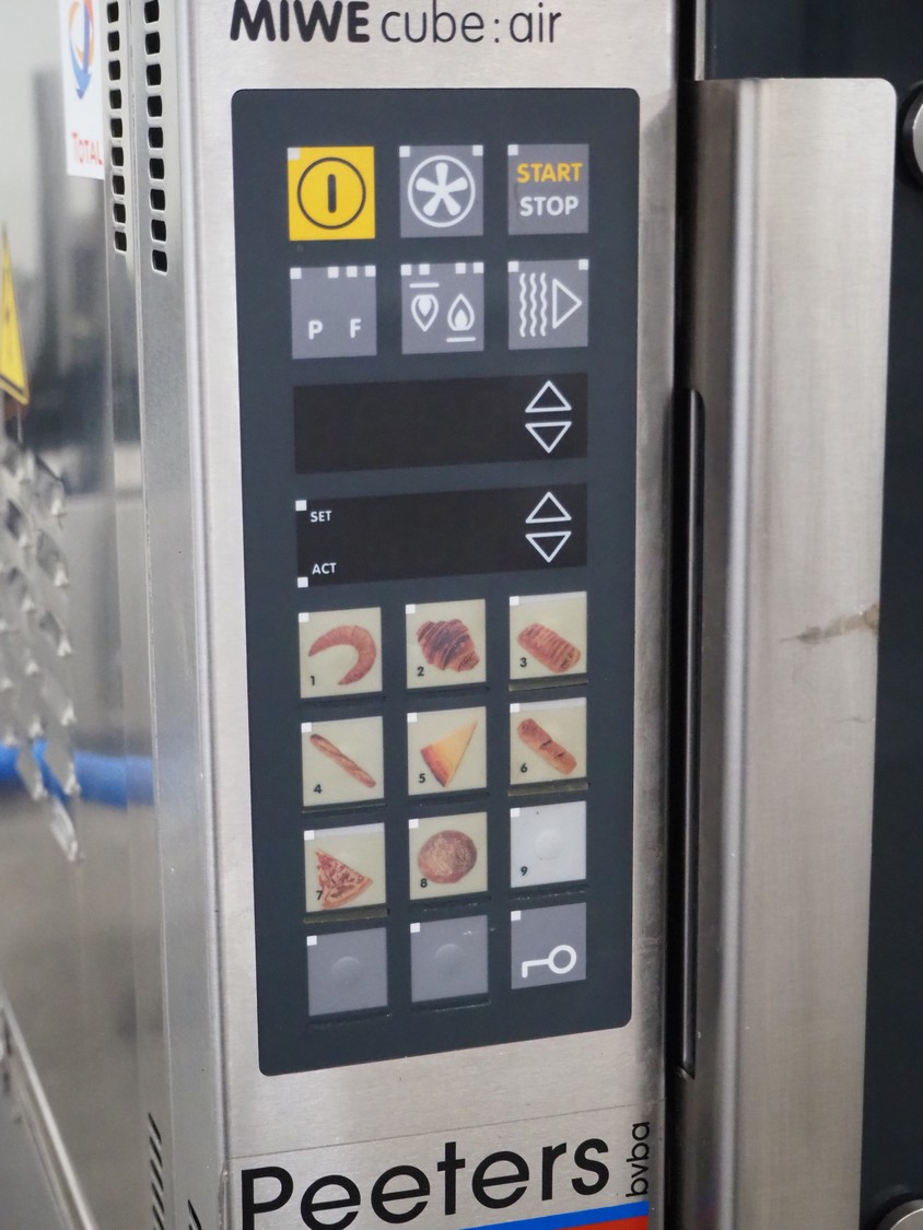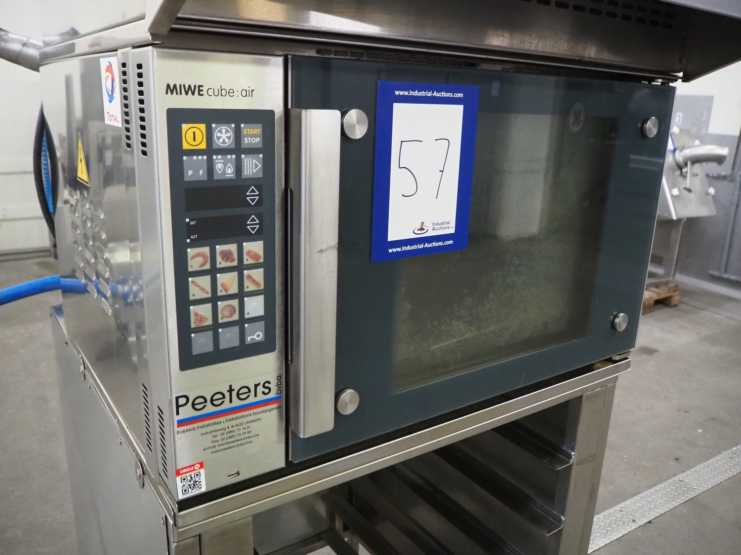 MIWE convection oven, type: CBA 3.0406, serial number: 601732, year of construction: 2014, 230/400 V, 3 Ph, 50 Hz, 5.4 kW, 5 floors, dimensions each floor: 810 mm x 600 mm, total dimensions: 1100 mm x 800 mm x 1680 mm.