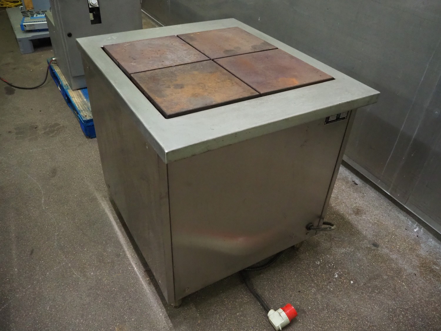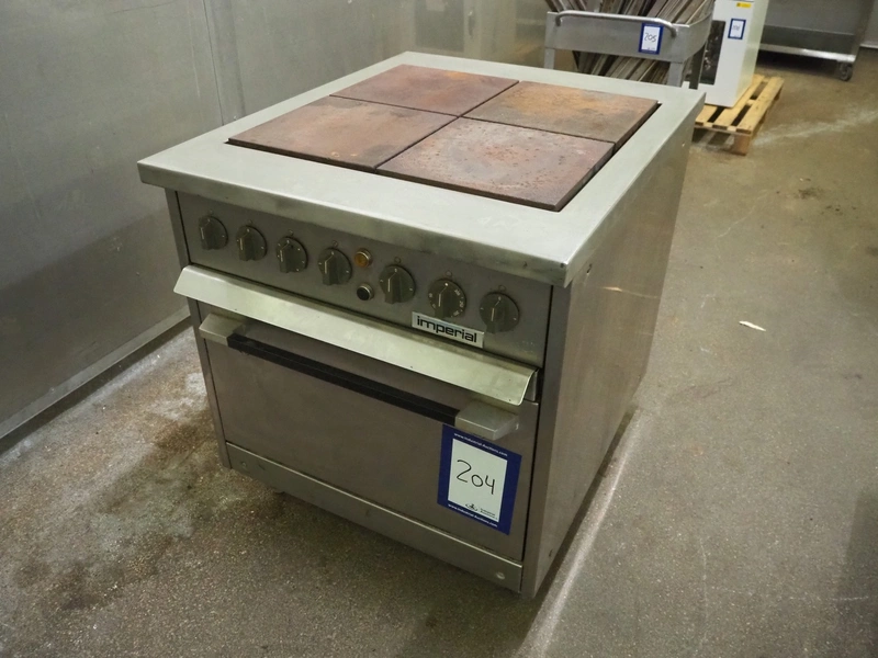 Imerial-Werke GmbH 4-pits stove with oven, type: EHWF4010, fabrication number: 132/8310, year of construction: 1983, 380 V, 16000 Watt, electric heated, dimensions: 900 mm x 750 mm x 860 mm.
