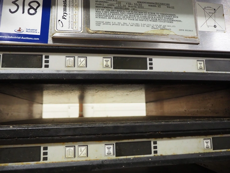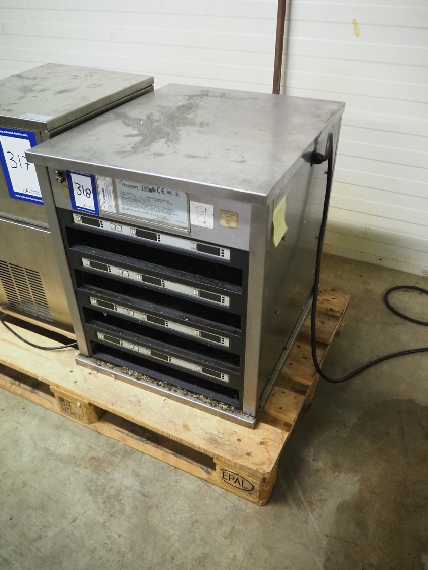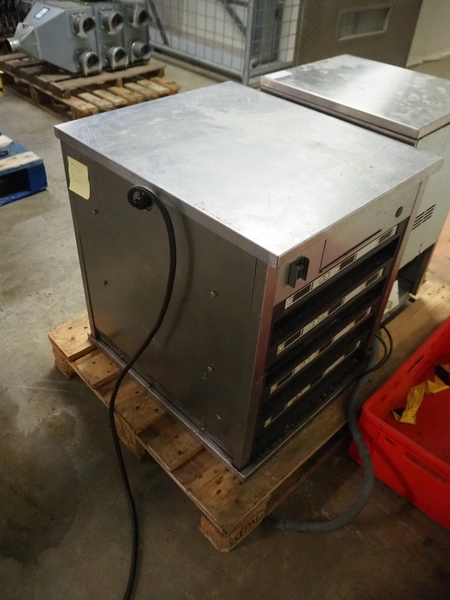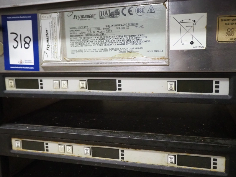 Frymaster universal holding cabinet, model: UHCP4TP, serial number: 0802UH0388, 230 V, 1 Ph, 50/60 Hz, 13.3 A, 3050 W, 4 floors, dimensions each floor: 600 mm x 450 mm x 60 mm, total dimensions: 645 mm x 550 mm x 645 mm.