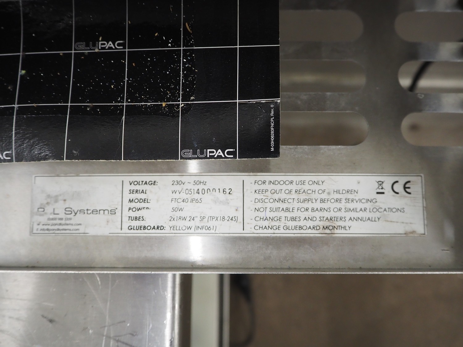 L Systems insect killer, model: FTC40, serial number: WV-0514000162, 230 V, 50 Hz, 50 W, dimensions: 700 mm x 180 mm x 350 mm.