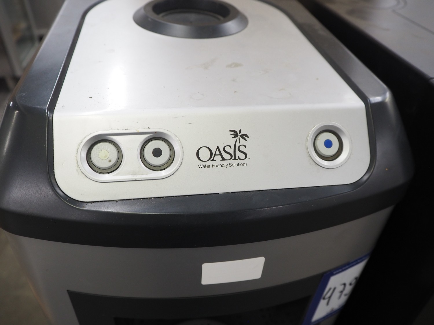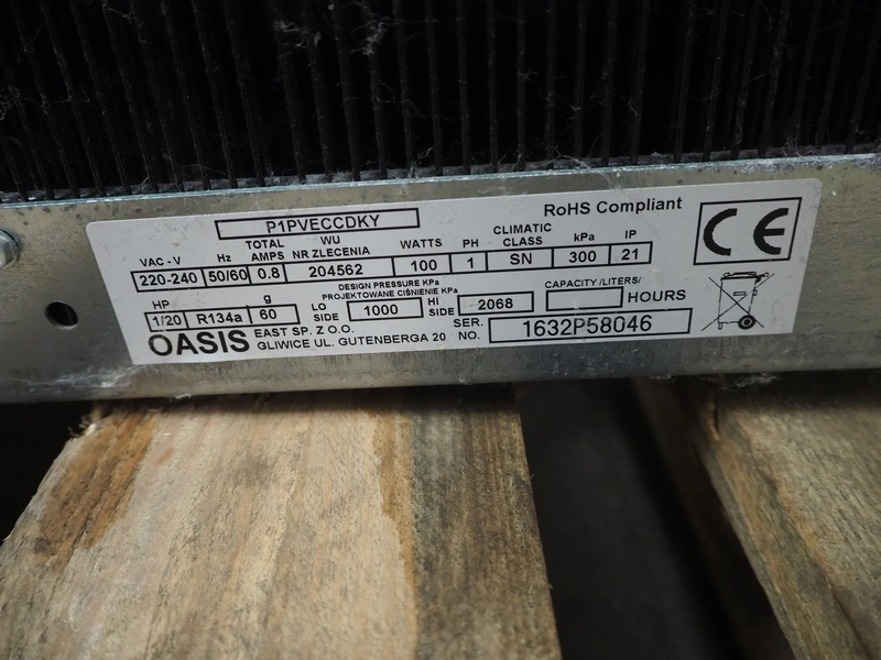 Oasis drink water dispenser, serial number: 1632P58046, 220-240 Vac, 50/60 Hz, 0.8 A, 100 W, dimensions: 370 mm x 320 mm x 1120 mm.