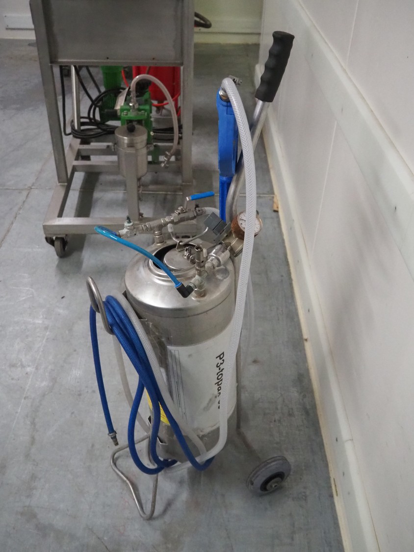 Ecolab mobile pressure vessel for foam, model: ST-2700, type: P3-topax-66, max: 150-300°F, dimensions: 400 mm x 370 mm x 1100 mm.