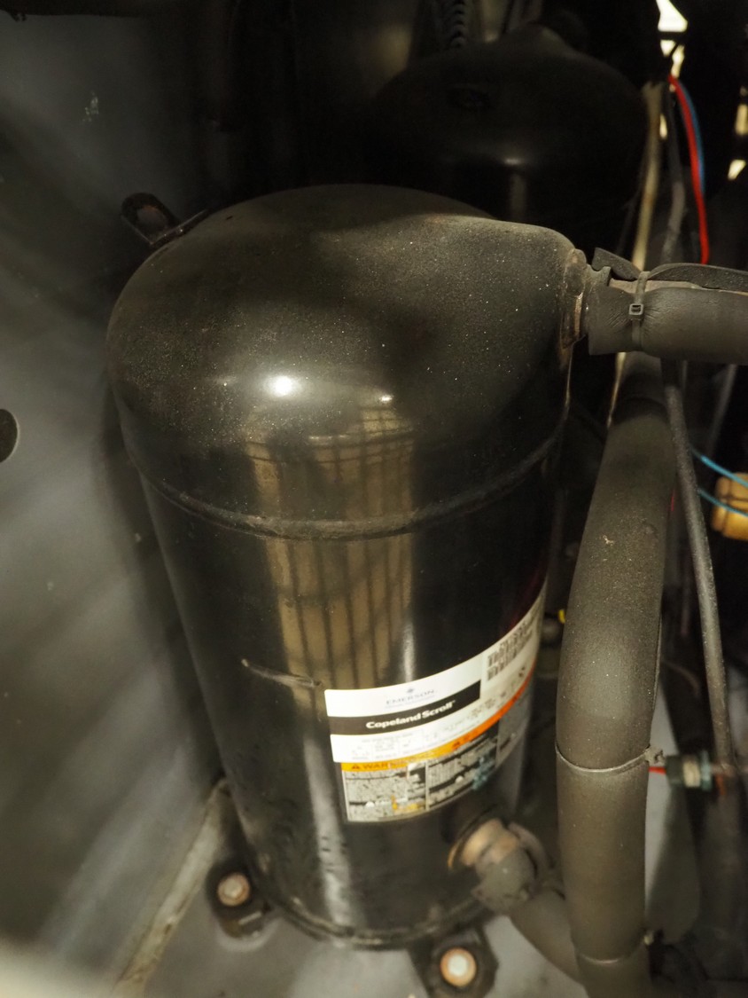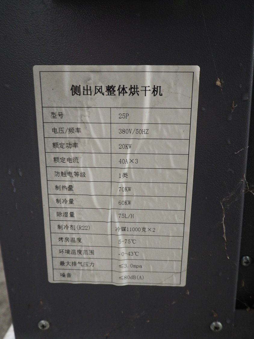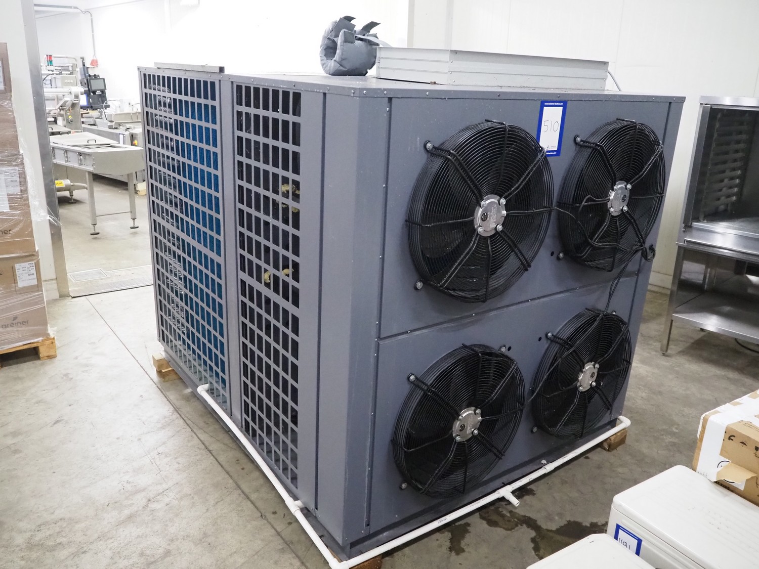 Compressor/ condensing unit, 380 V, 1 Ph, 50 Hz, 4 fans, dimensions: 2150 mm x 1850 mm x 1750 mm.