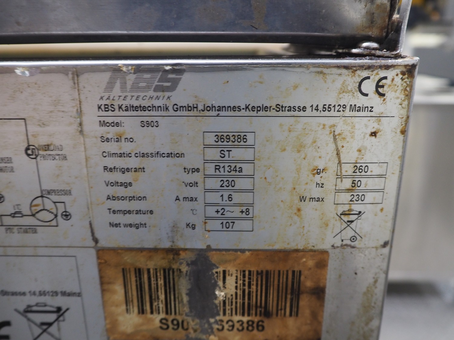 KBS Kältechnik GmbH saladette, model: S903, serial number: 369386, year of construction: 04-2013, refrigerant: R134a, 230 V, 50 Hz, 1.6 A, weight: 107 kg, dimensions inside: (3x) 570 mm x 320 mm, total dimensions: 1370 mm x 700 mm x 850 mm.