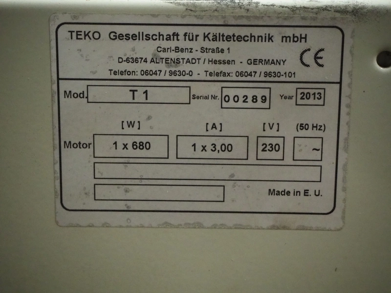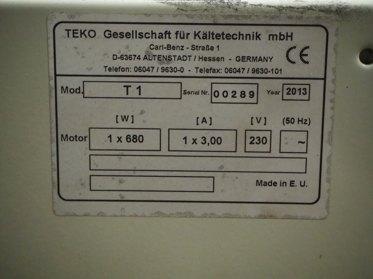 Teko evaporator, model: T1, serial number: 00289, year of construction: 2013, 230 V, 50 Hz, 3 A, dimensions: 930 mm x 500 mm x 800 mm.