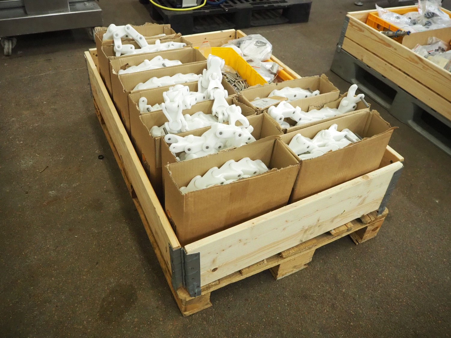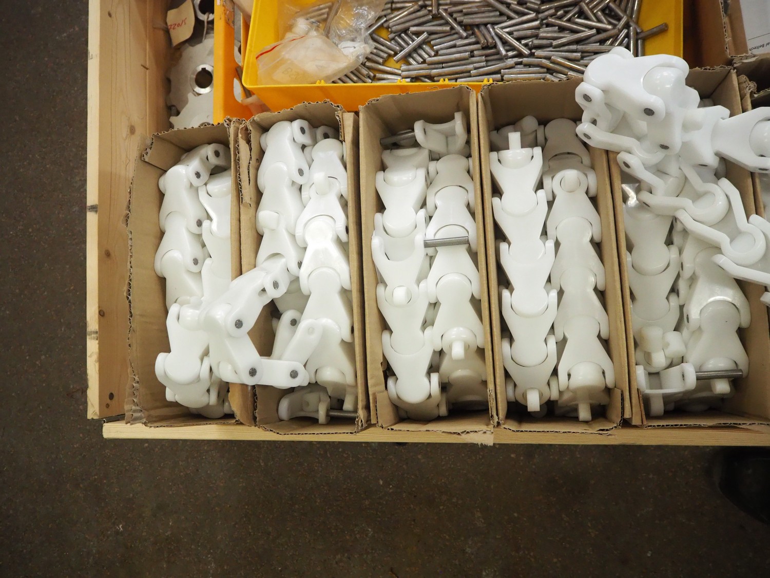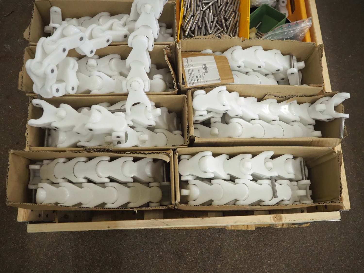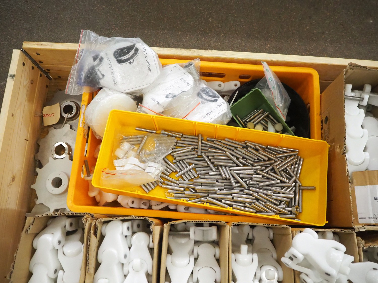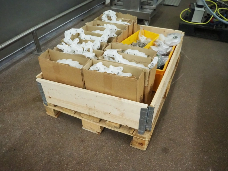 Parts for Brüel crate washer, among others 60 meters of plastic chain.