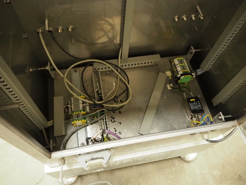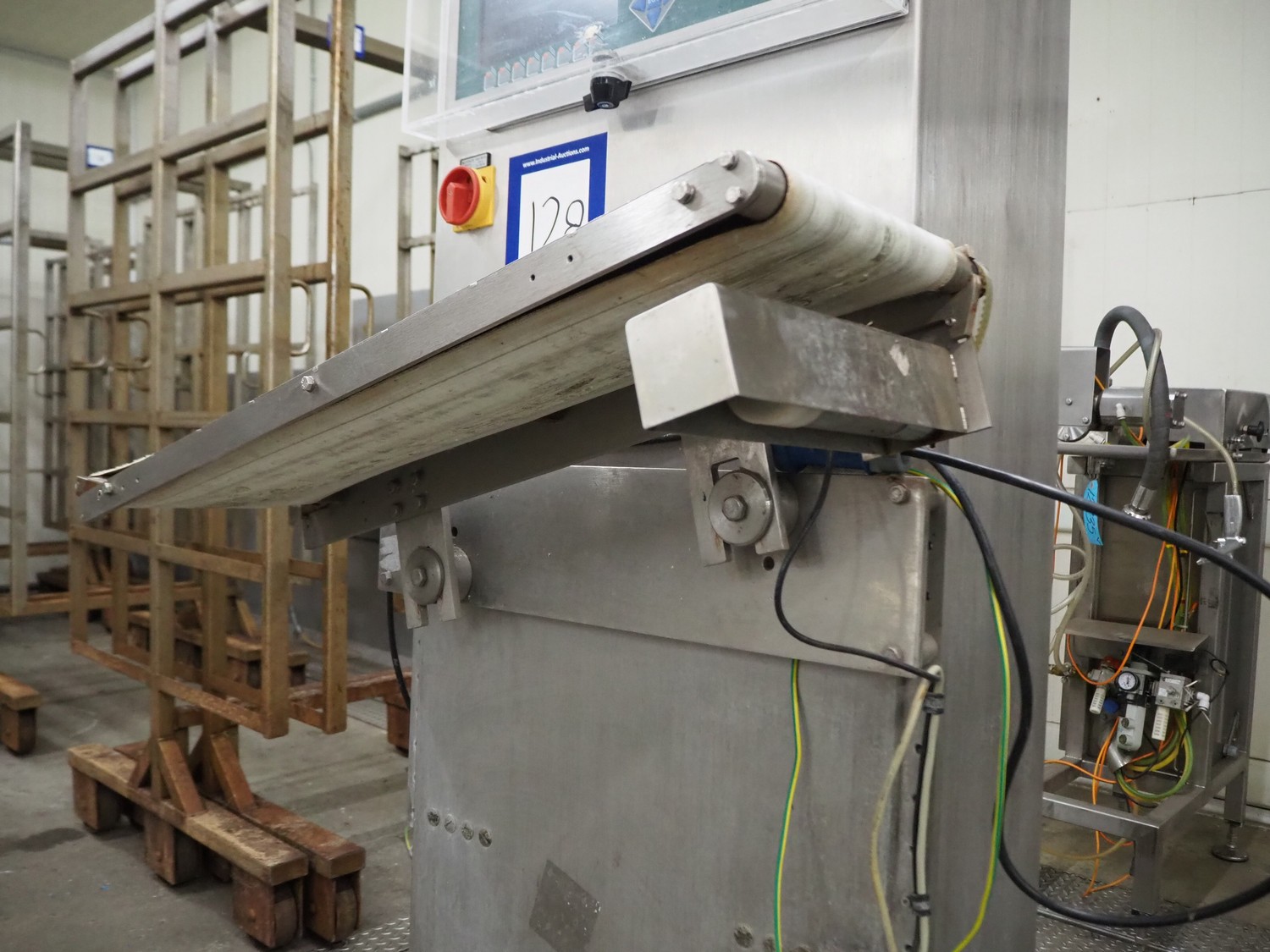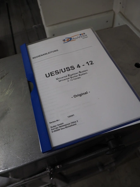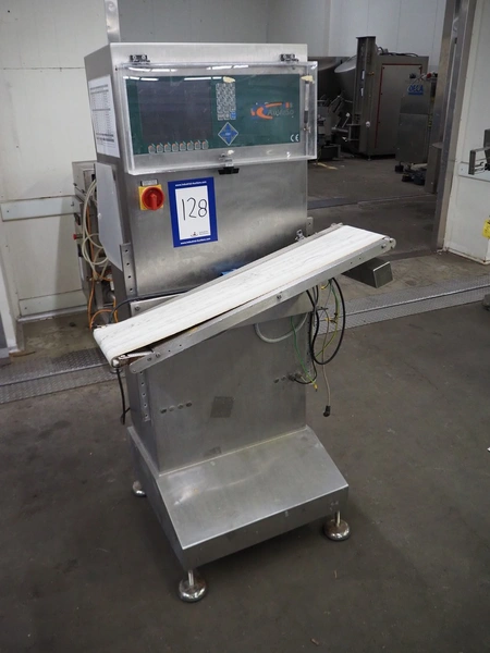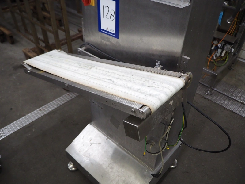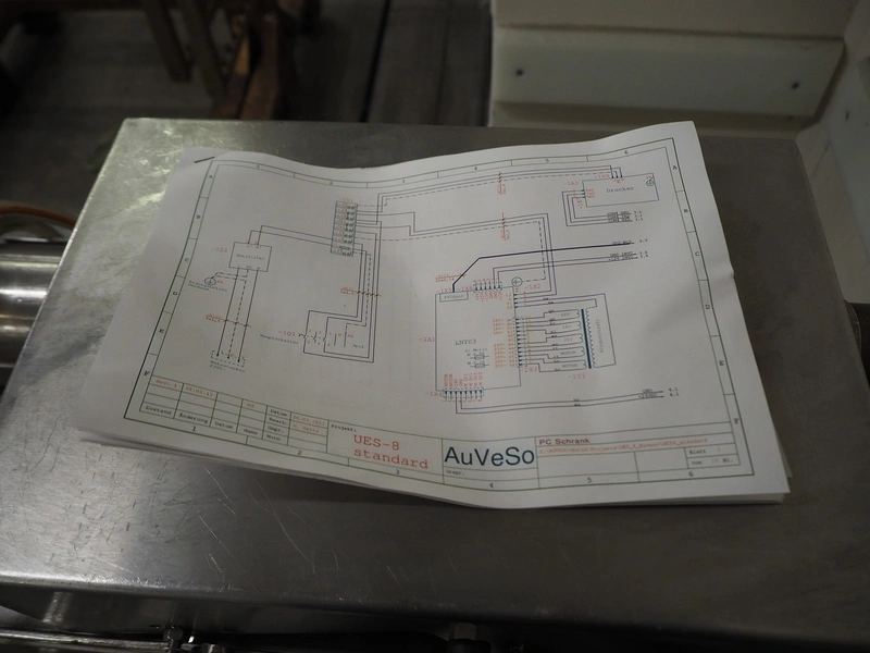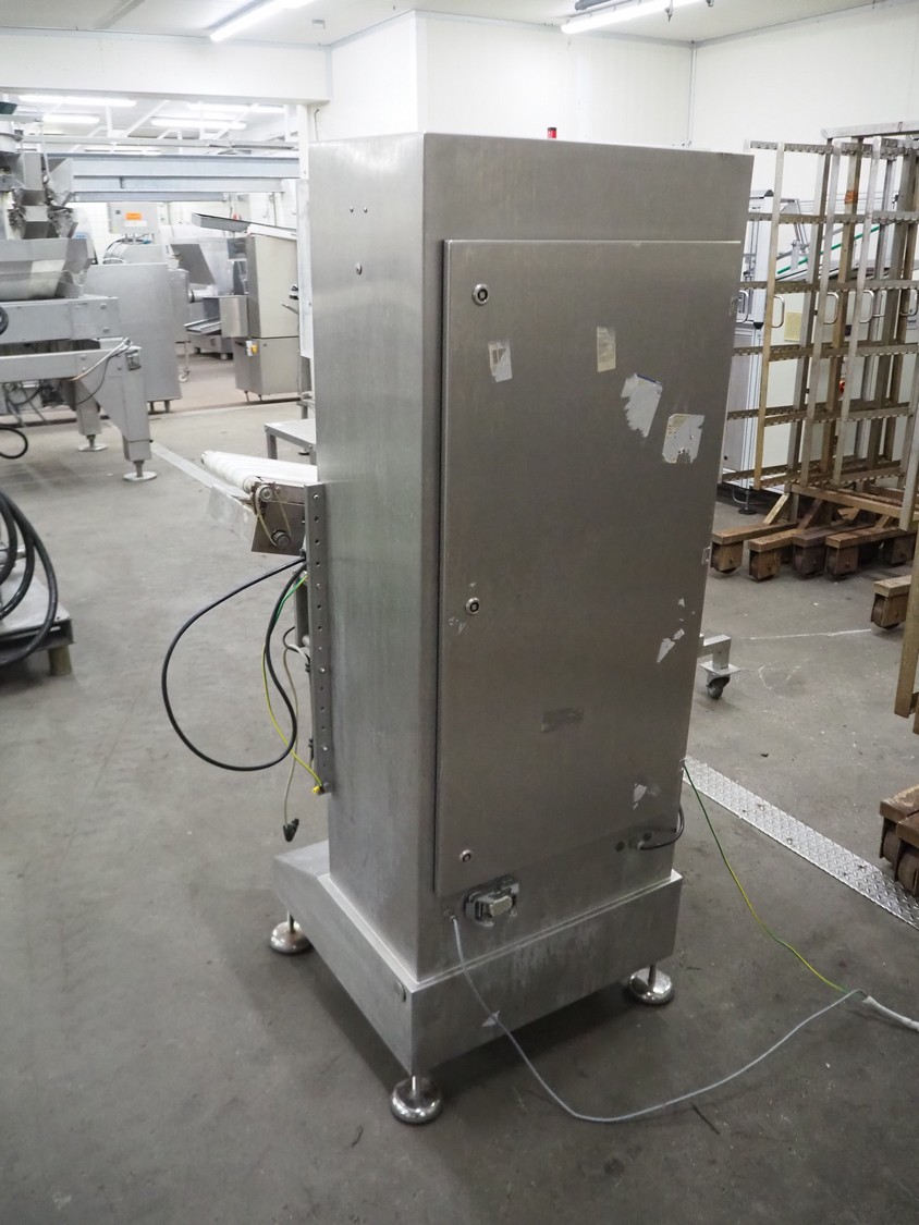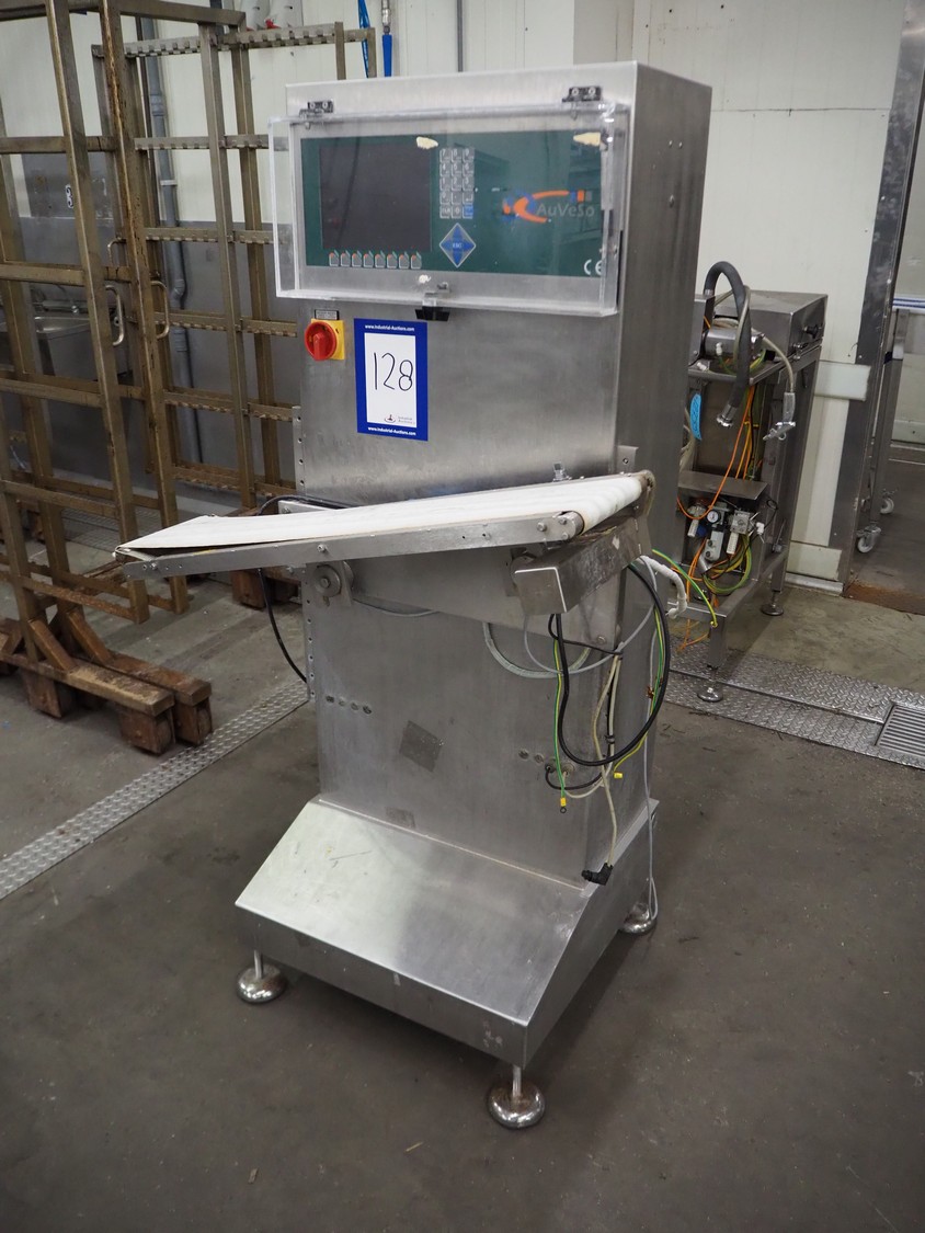 AuVeSo check weigher, type: UES - 6 / K, number: 120301, year of construction: 2012, minimum weight: 100 gram, maximum weight: 800 gram, target weight: 2000 gram till 10000 gram, capacity: 100 per minute, temperature: 10 till 40° Celsius, 6 bar, 230/400 V, 50 Hz, 6 A, plastic belt, belt width: 200 mm, total dimensions: 1000 mm x 700 mm x 1700 mm. Technical condition unknown.