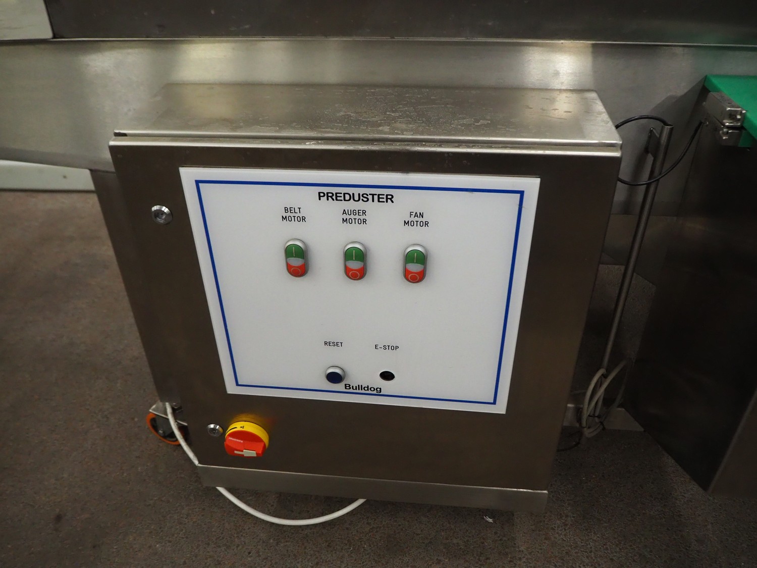 Bulldog mobile pre-duster, s/s mesh belt, belt width: 600 mm, total dimensions: 2300 mm x 1300 mm x 2000 mm. Never used.