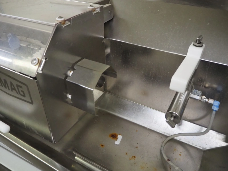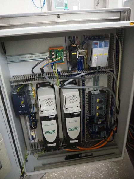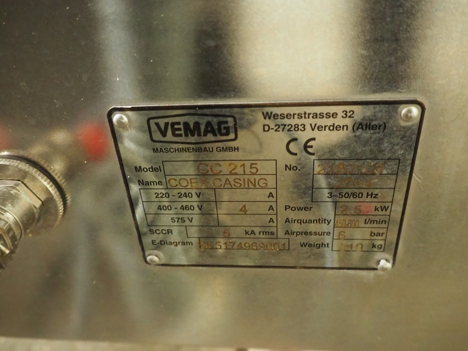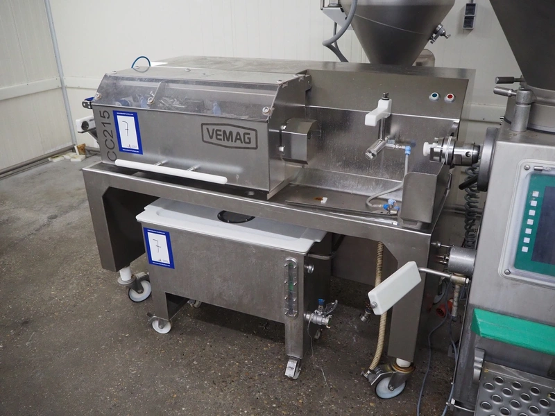 Vemag Maschinenbau GmbH mobile co-extrusion, model: CC215, number: 2150103, year of construction: 2014, 400/460 V, 3 Ph, 50/60 Hz, 4 A, 2.5 kW, plastic belt, belt width: 50 mm, total dimensions: 1920 mm x 950 mm x 1300 mm. Including s/s trolley, dimensions: 940 mm x 440 mm x 700 mm. Including 10 boxes with parts.