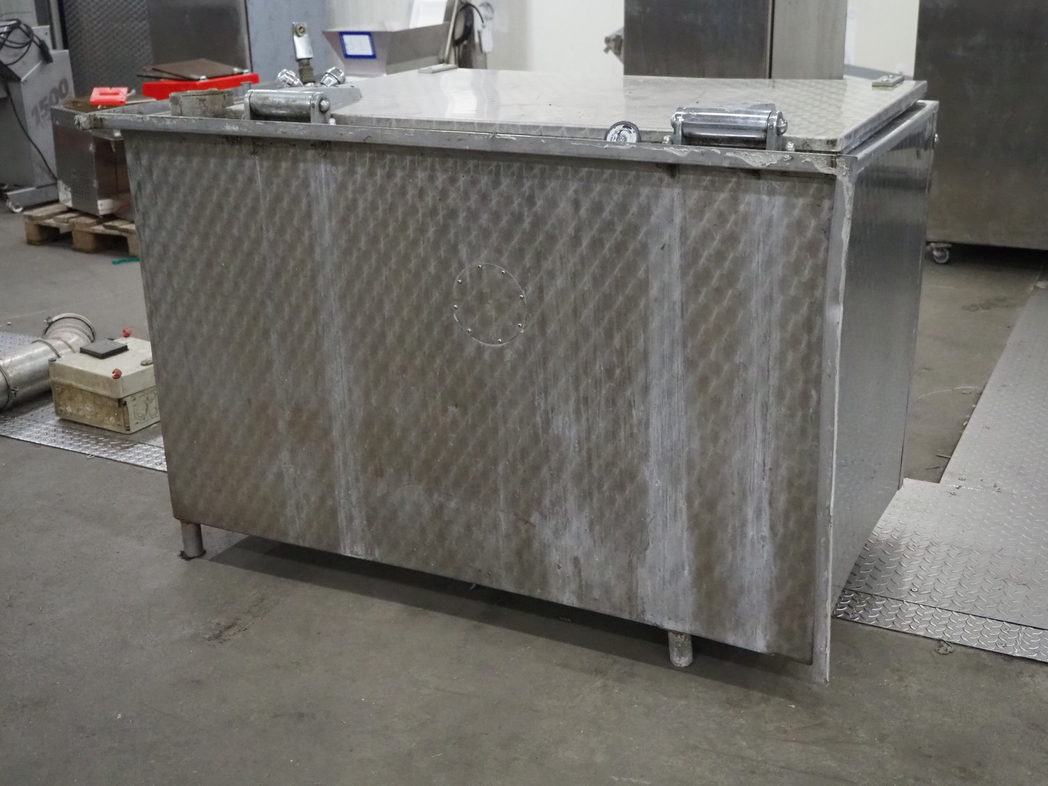 Beelonia cooking vessel, dimensions inside: 1100 mm x 700 mm x 400 mm, total dimensions: 1530 mm x 1100 mm x 1150 mm.