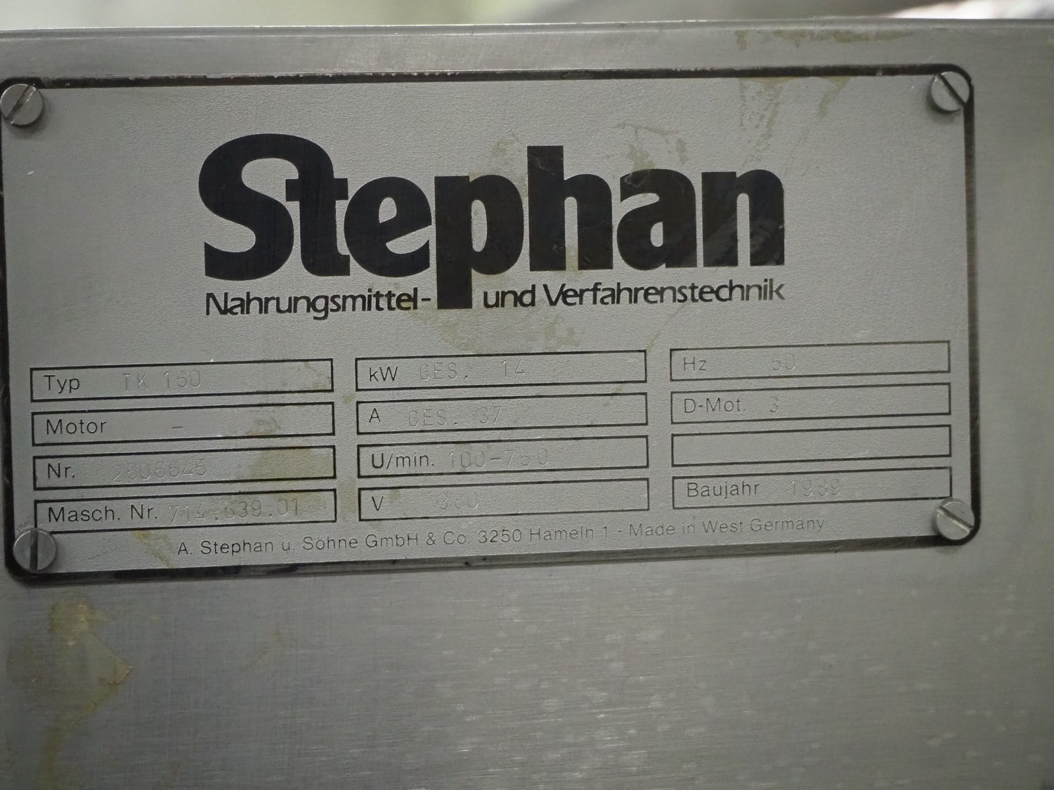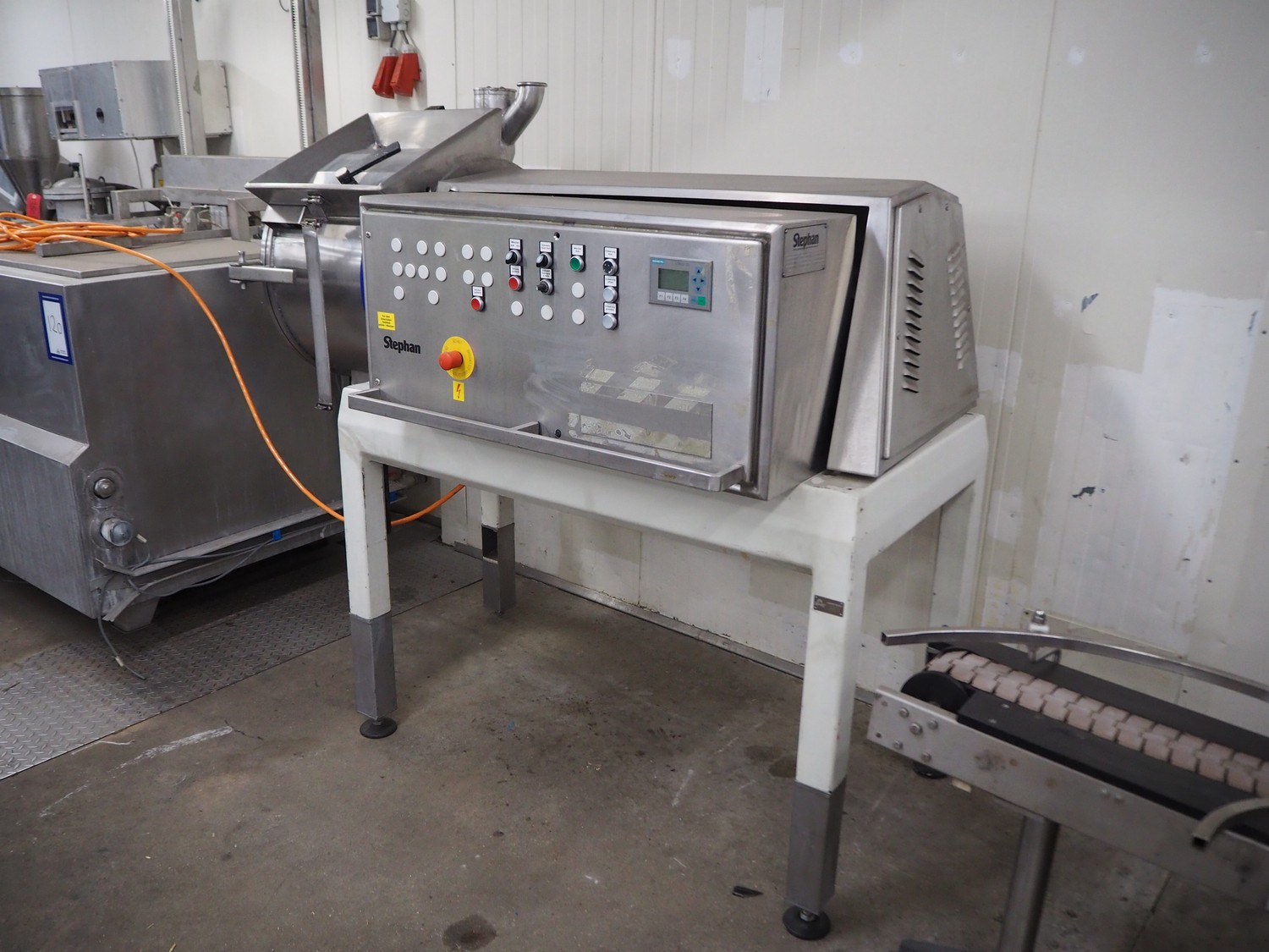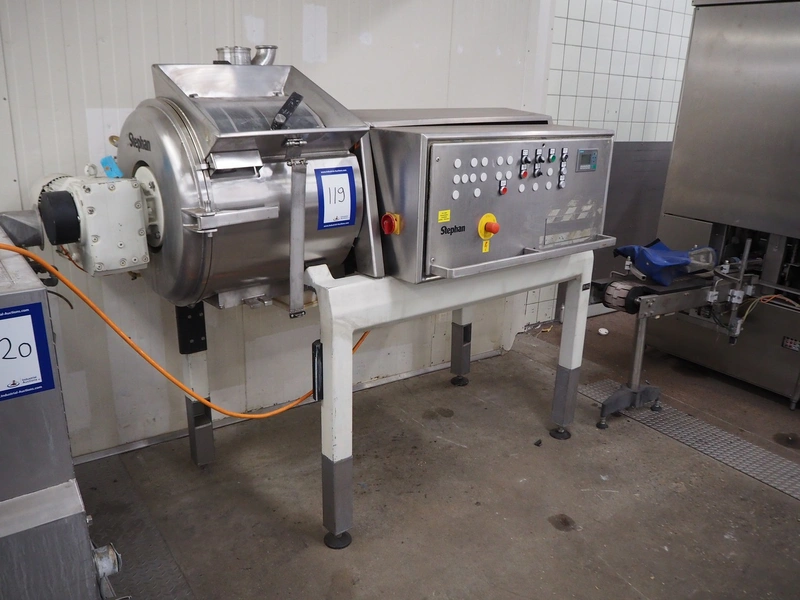 Stephan high speed cutter, type: TK 150, machine number: 714.539.01, year of construction: 1989, 380 V, 50 Hz, 14 kW, dimensions infeed: 350 mm x 220 mm, diameter drum: 560 mm, dimensions outfeed: 430 mm x 220 mm, total dimensions: 1880 mm x 1000 mm x 1730 mm. Missing knife.