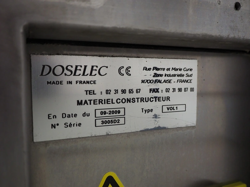 DOSELEC dosing machine, type: VOL1, serial number: 3005D2, year of construction: 09-2009, diameter hose: 40 mm, total dimensions: 1000 mm x 400 mm x 1340 mm.
