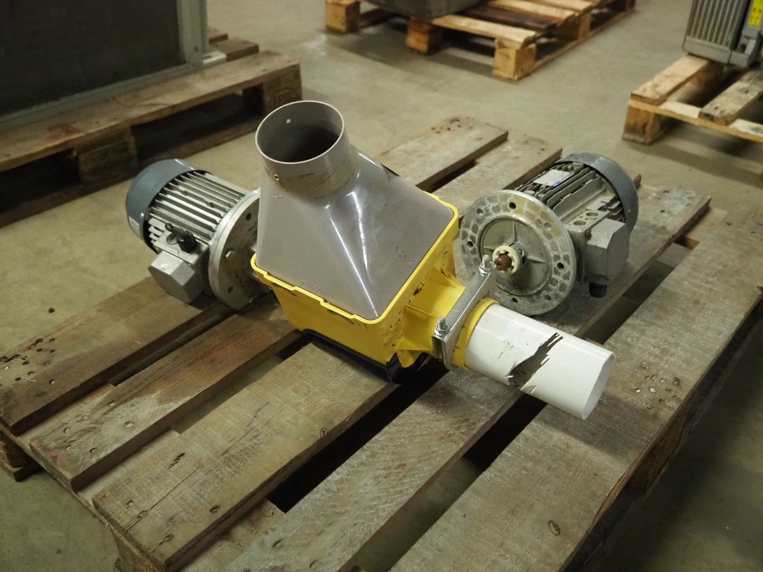 Roxell dosing unit, serial number: 351745, diameter pipe: 100 mm and 85 mm, total dimensions: 810 mm x 250 mm x 390 mm.