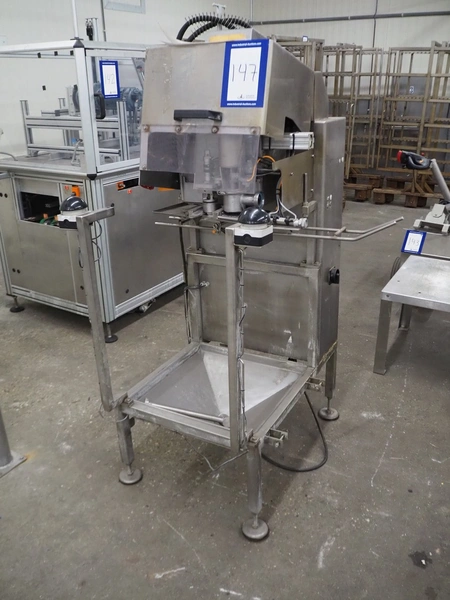 Bag-filling machine, diameter filling pipe: 60 mm, clearance bag holder: 130 mm x 40 mm, total dimensions: 1100 mm x 900 mm x 1800 mm.