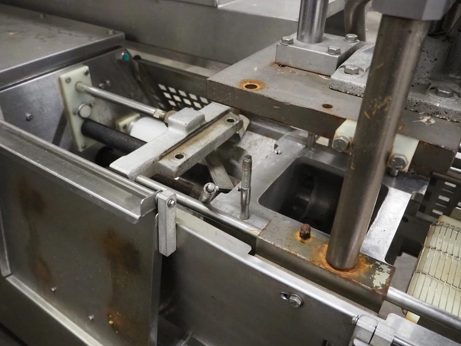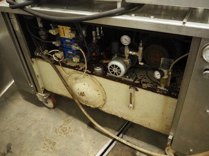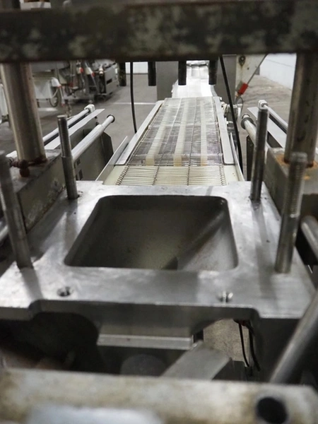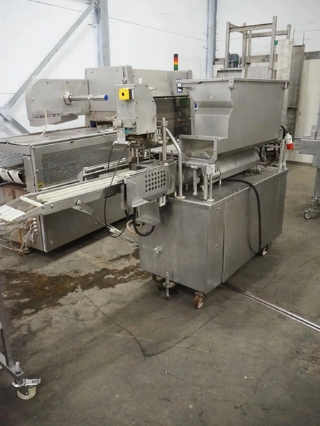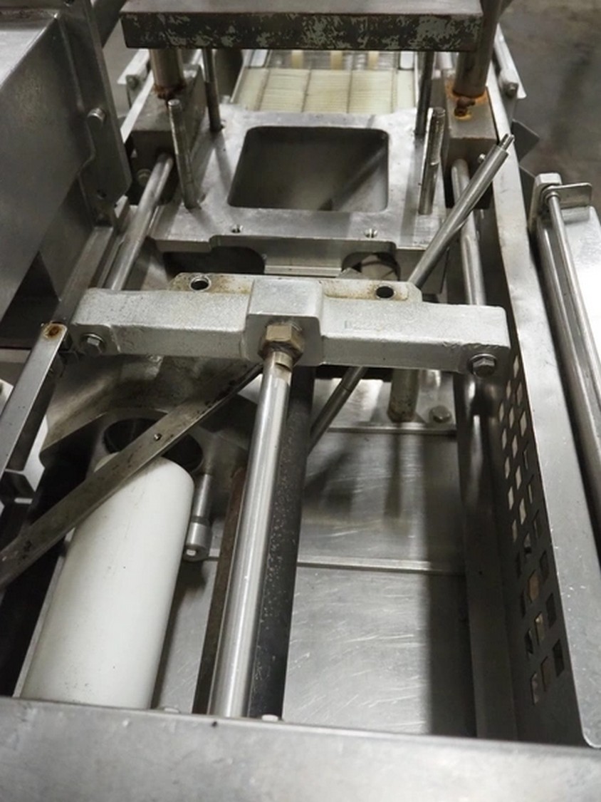 Formax mobile forming machine, model: PFM-6, serial number: 127, 420 V, 3 Ph, 50 Hz, 17 A, s/s mesh belt, belt width: 180 mm, total dimensions: 2800 mm x 800 mm x 1800 mm. Incomplete.