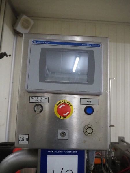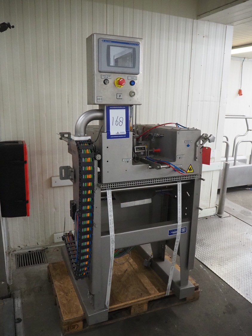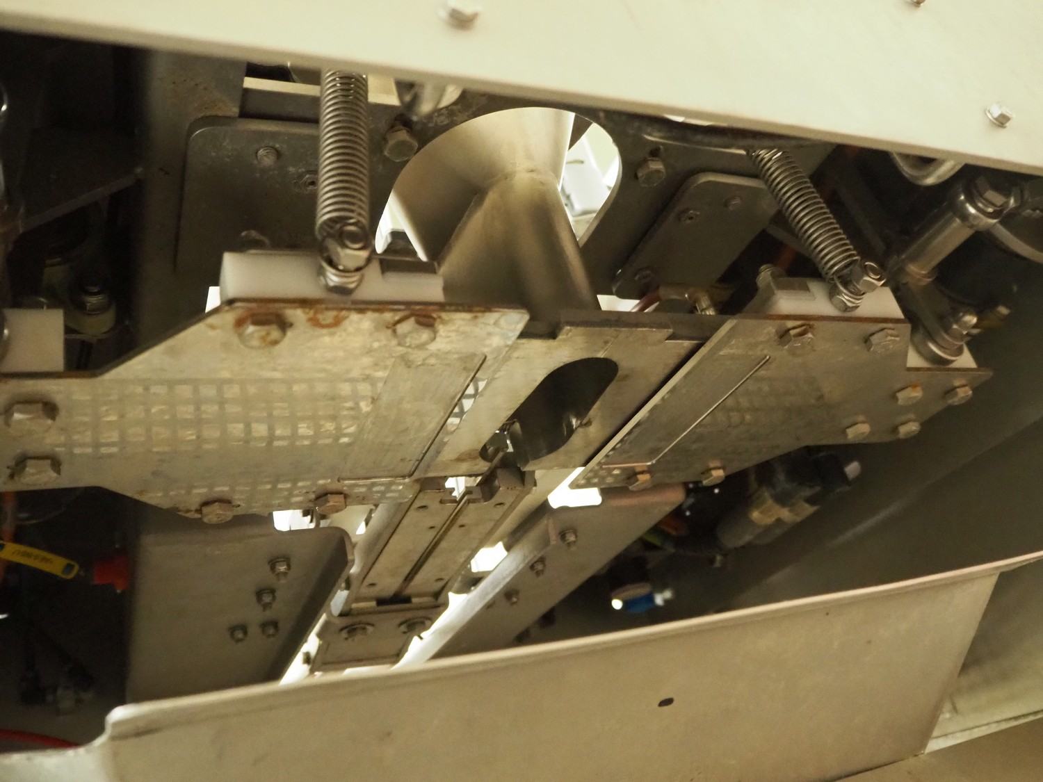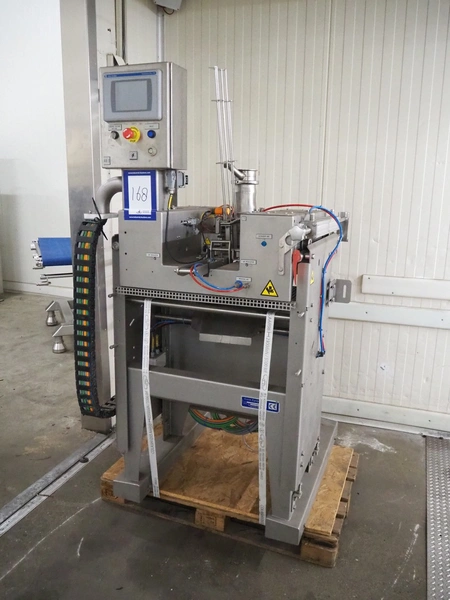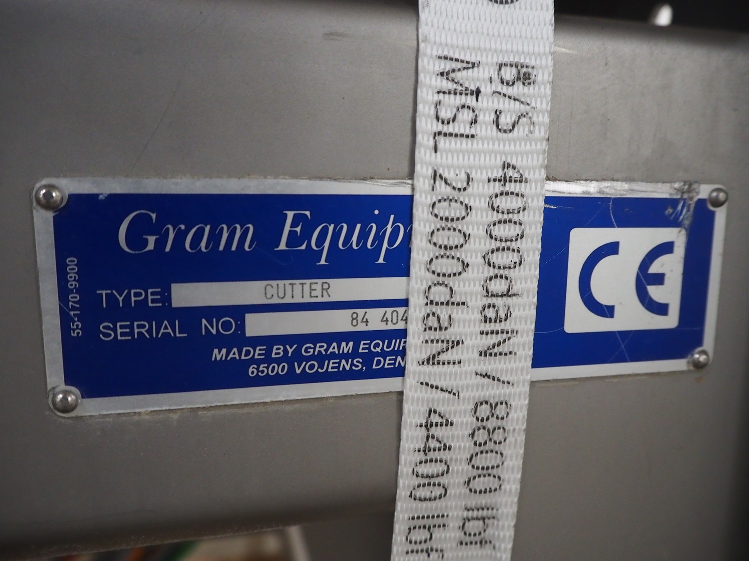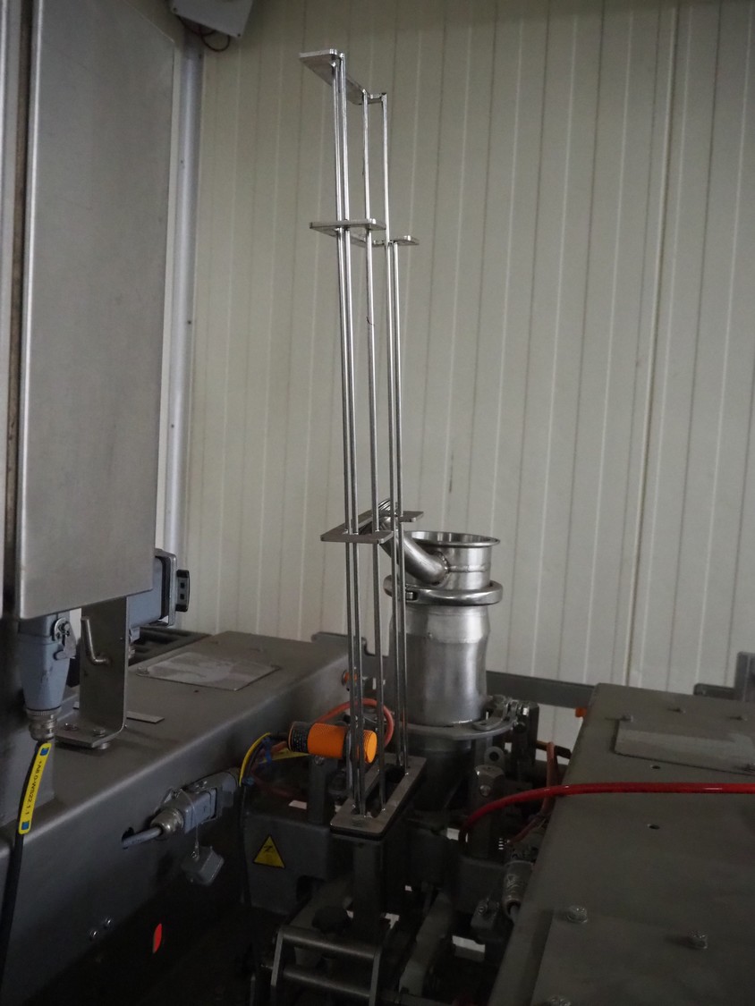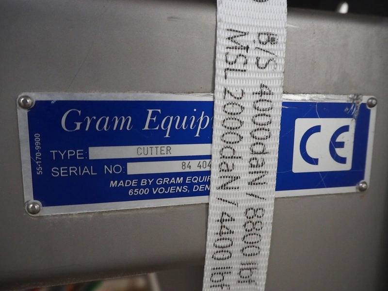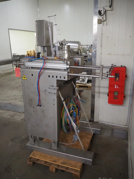 Gram Equipment ice cream extruder/forming, cutting with stick inserter, type: CUTTER, clearance input: 650 mm x 100 mm, dimensions pipe: 100 mm x 40 mm, total dimensions: 1400 mm x 1000 mm x 1850 mm.