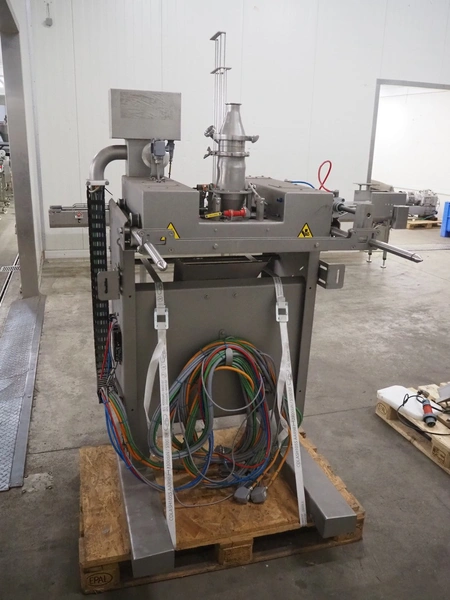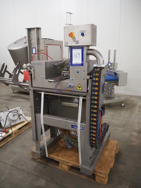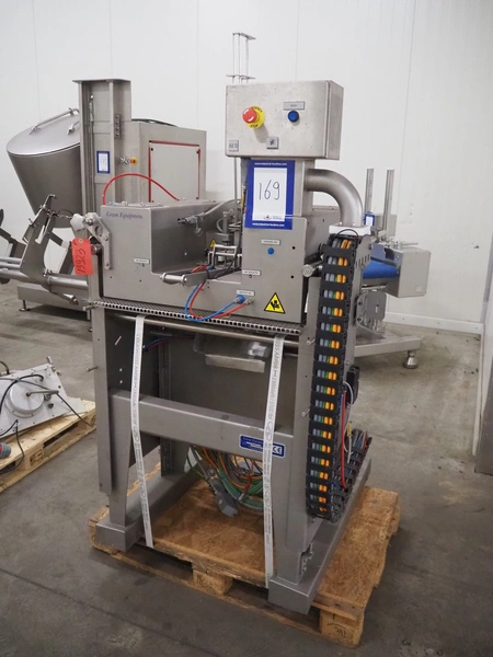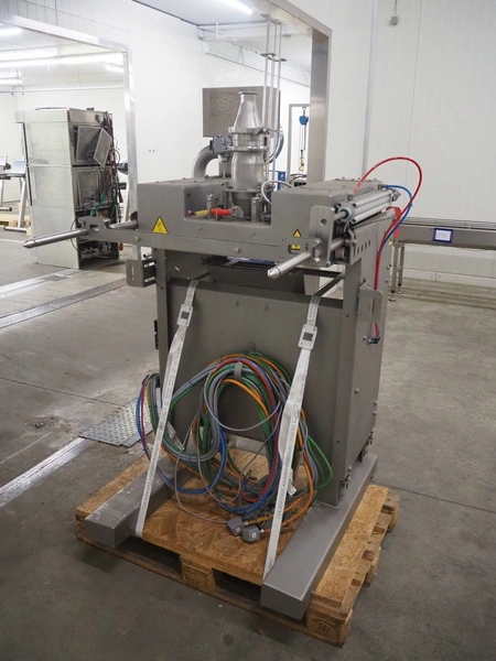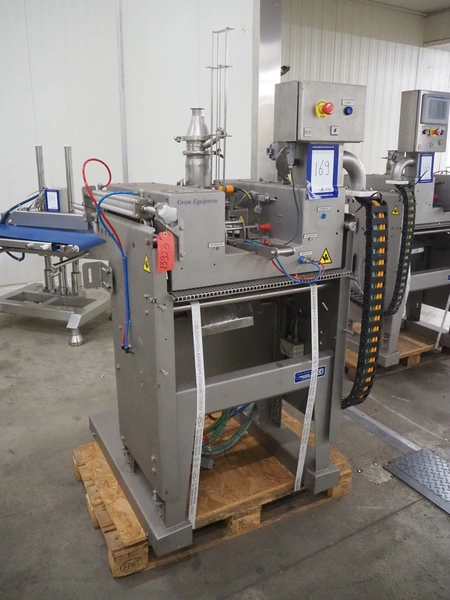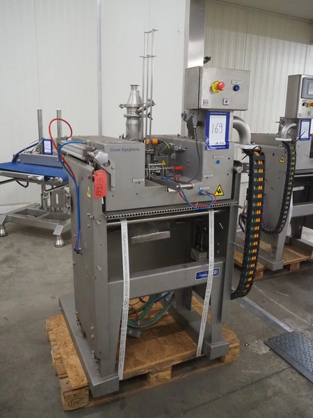 Gram Equipment ice cream extruder/forming, cutting with stick inserter, type: CUTTER, clearance input: 650 mm x 100 mm, dimensions pipe: 100 mm x 40 mm, total dimensions: 1400 mm x 1000 mm x 1850 mm.