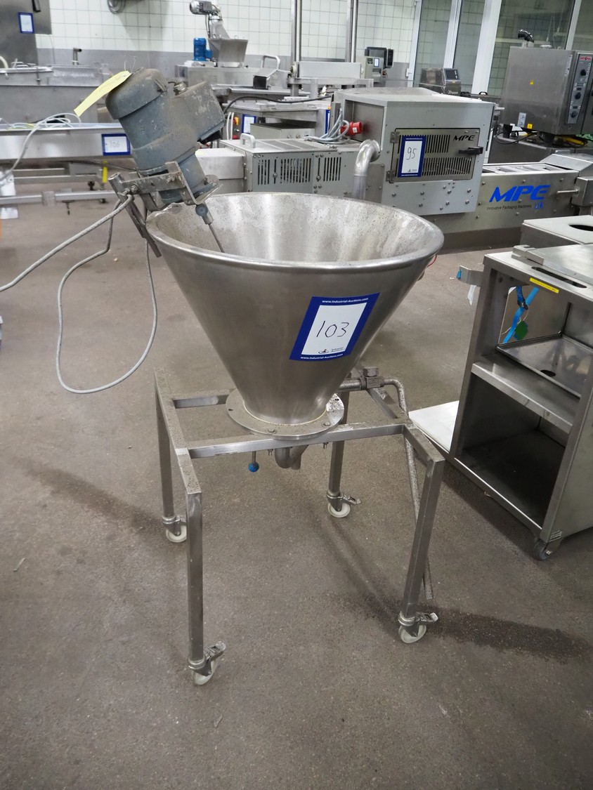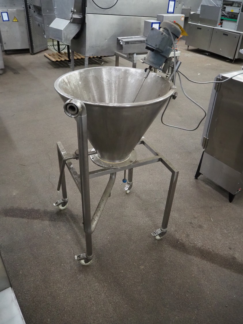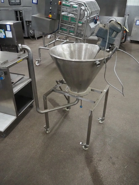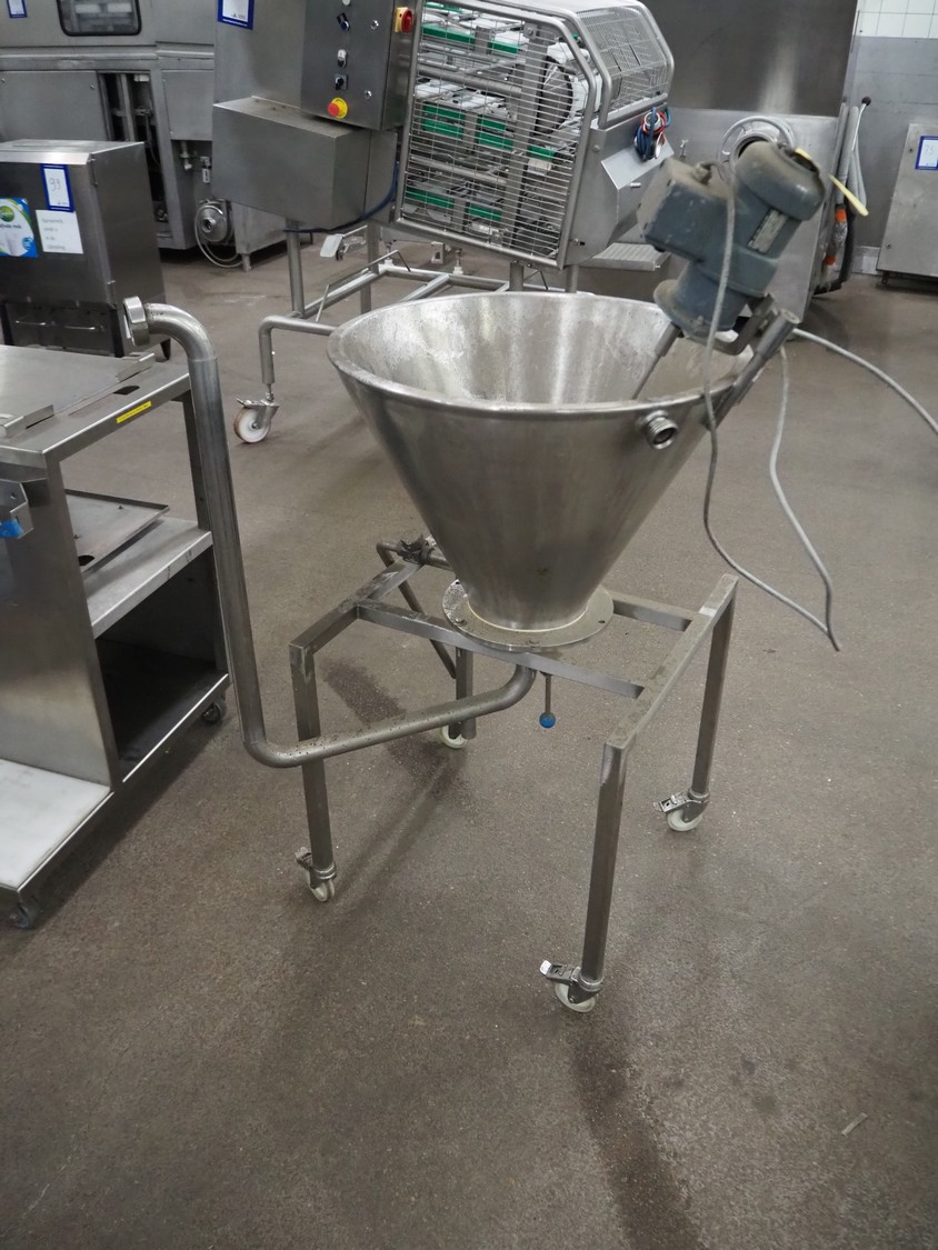 S/s mobile infeed bunker, dimensions: 800 mm x 750 mm x 1400 mm.