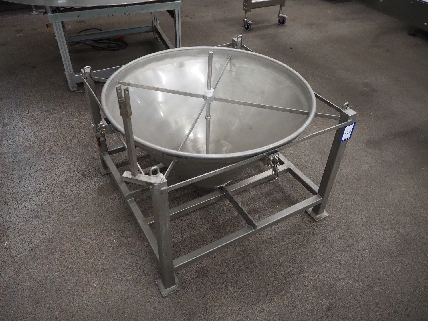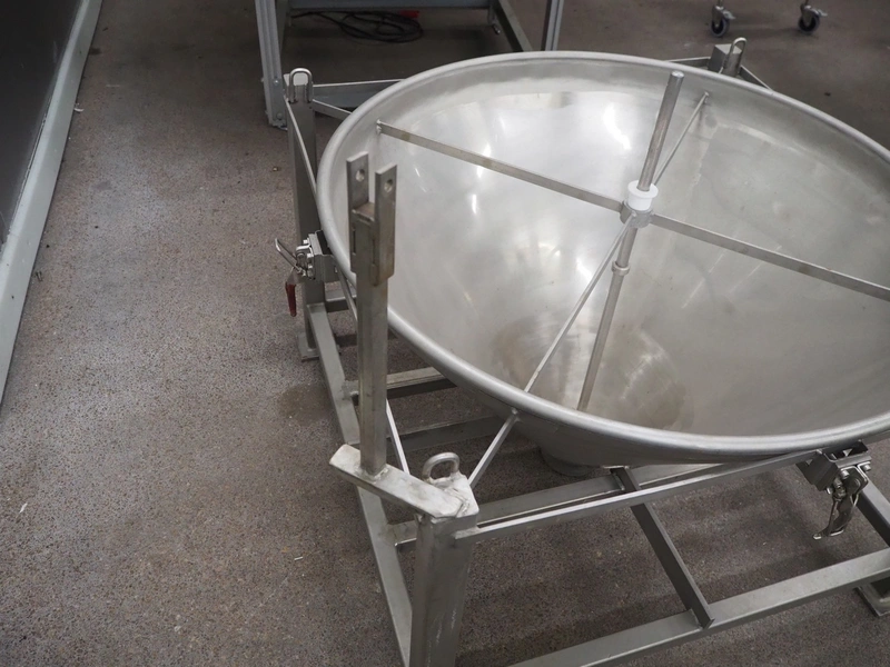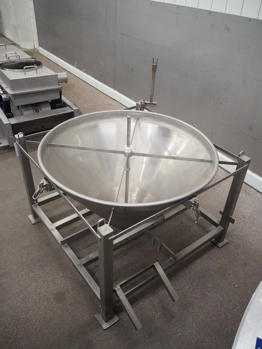 S/s infeed bunker, dimensions: 1000 mm x 1000 mm x 1050 mm.