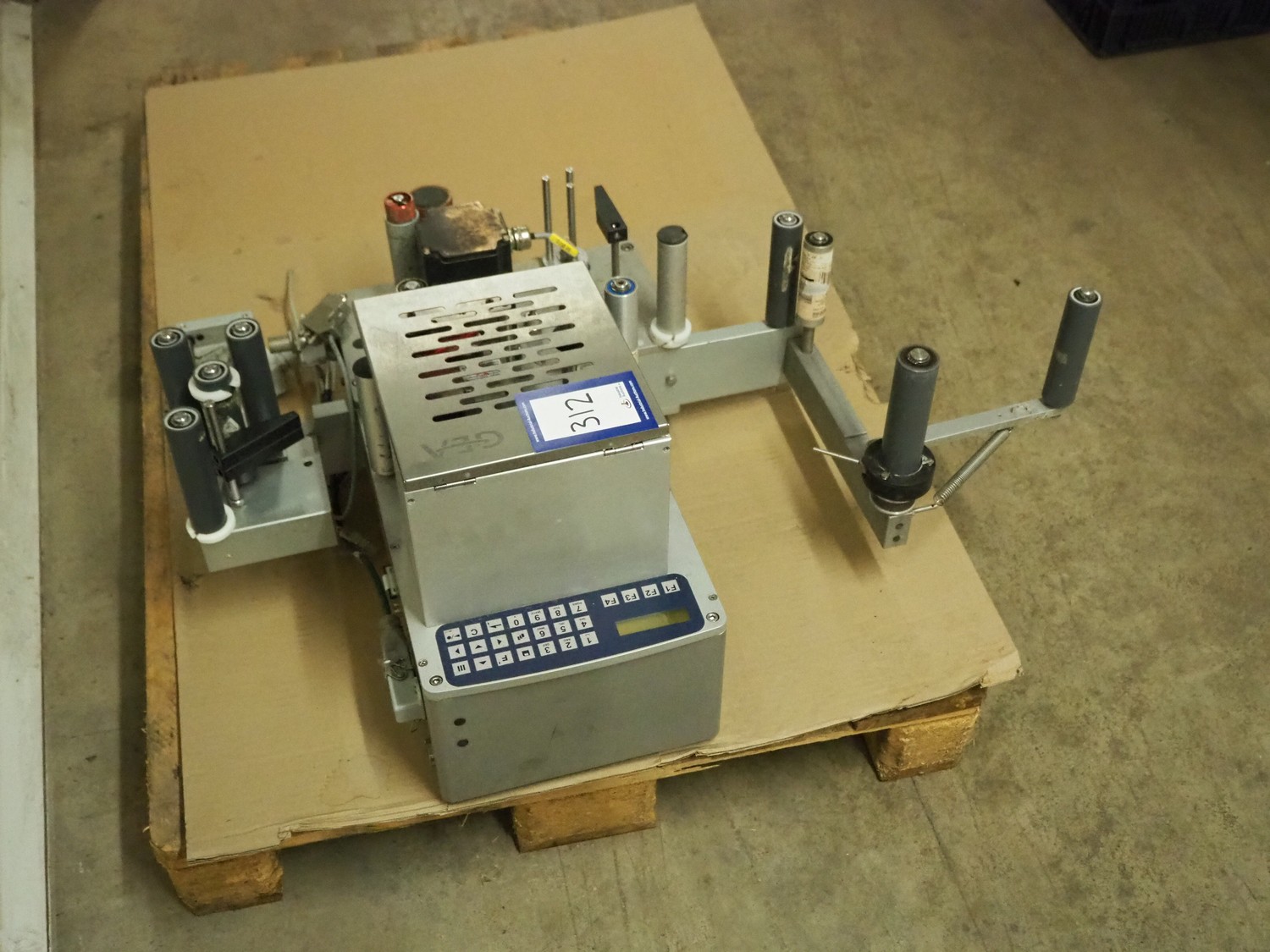 GEA Food Solutions Germany GmbH labelling unit, type: LPM 108-12 LI, serial number: 18861281, year of construction: 2018, 30 V, 50-60 Hz, 12 A. dimensions: 850 mm x 350 mm x 600 mm.