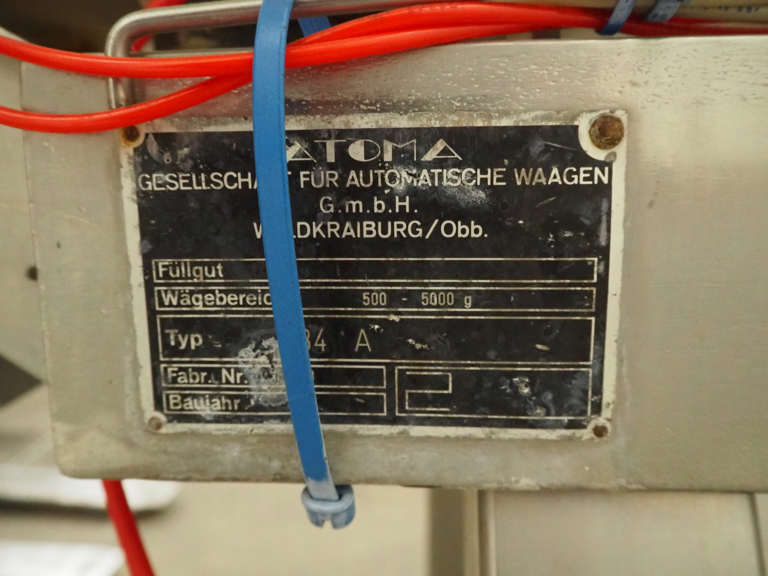 Atoma lineair batch weigher, minimum weight: 500-5000 gram, gutter width: 300 mm, dimensions batch: 295 mm x 270 mm, total dimensions: 2300 mm x 1000 mm x 2150 mm.