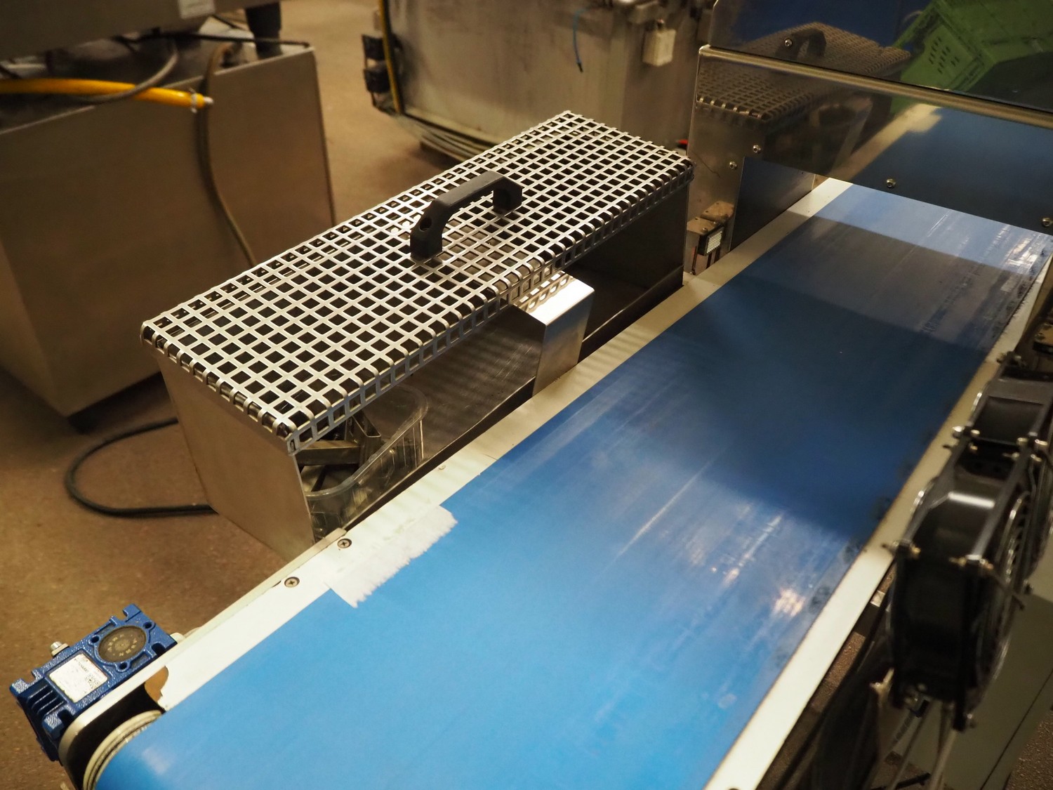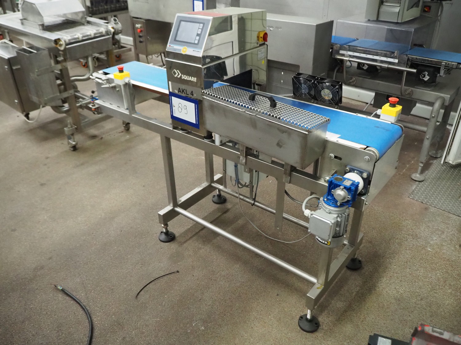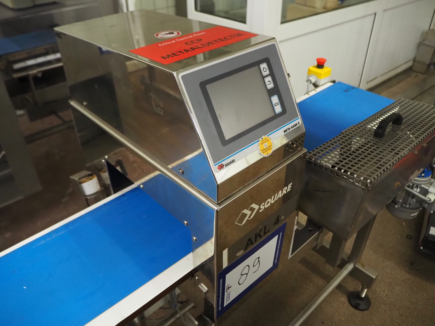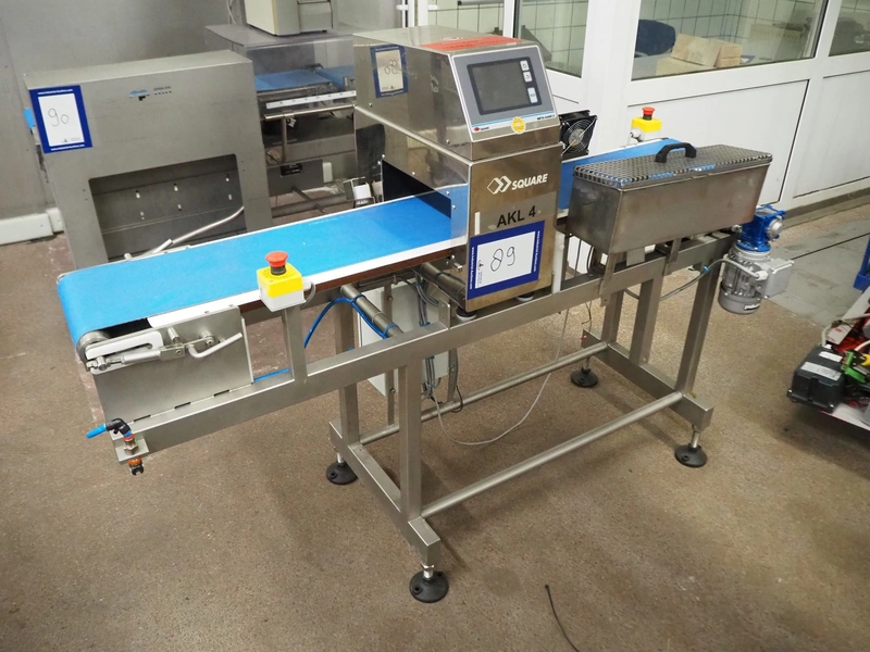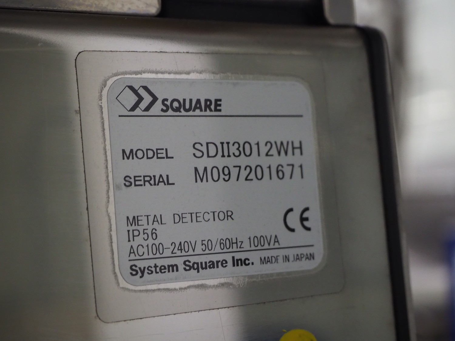 Square metal detector, model: SDII3012WH, serial number: M097201671, 100-240 V, 50/60 Hz, plastic belt, belt width: 250 mm, clearance: 300 mm x 110 mm, total dimensions: 1800 mm x 640 mm x 1320 mm.