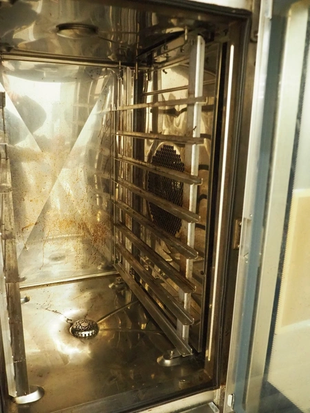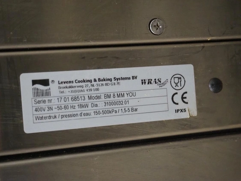Leventi combi steamer, type: BM 8 MM YOU, serial number: 17 01 68513, 400 V, 3 Ph, 50/60 Hz, 18 kW, 8 floors, dimensions each floor: 600 mm x 400 mm, total dimensions: 930 mm x 880 mm x 2080 mm.