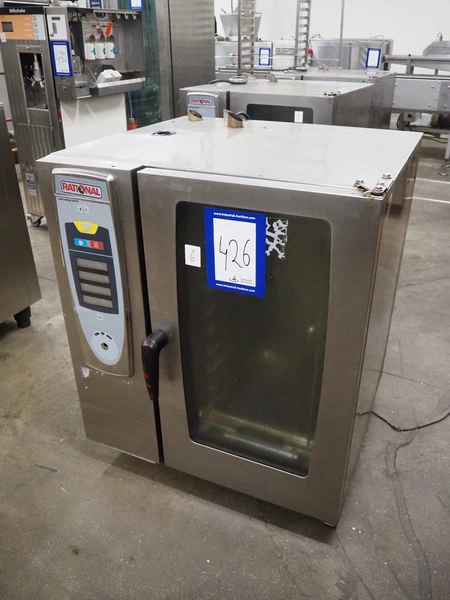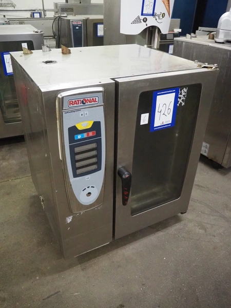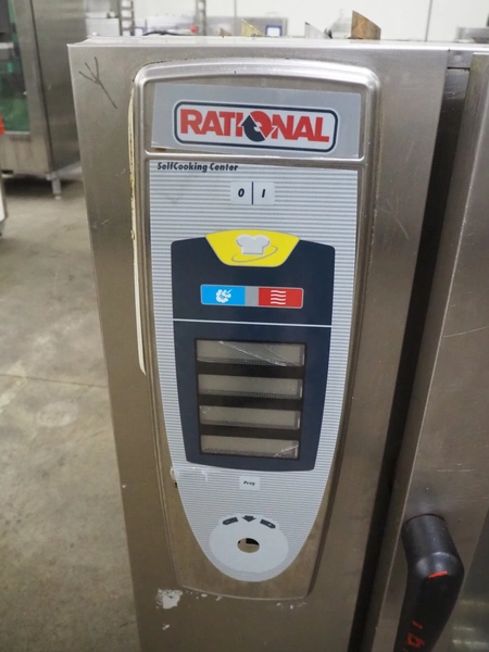 Rational combi steamer, 10 floors, dimensions each floor: 500 mm x 330 mm, total dimensions: 850 mm x 800 mm x 1020 mm.