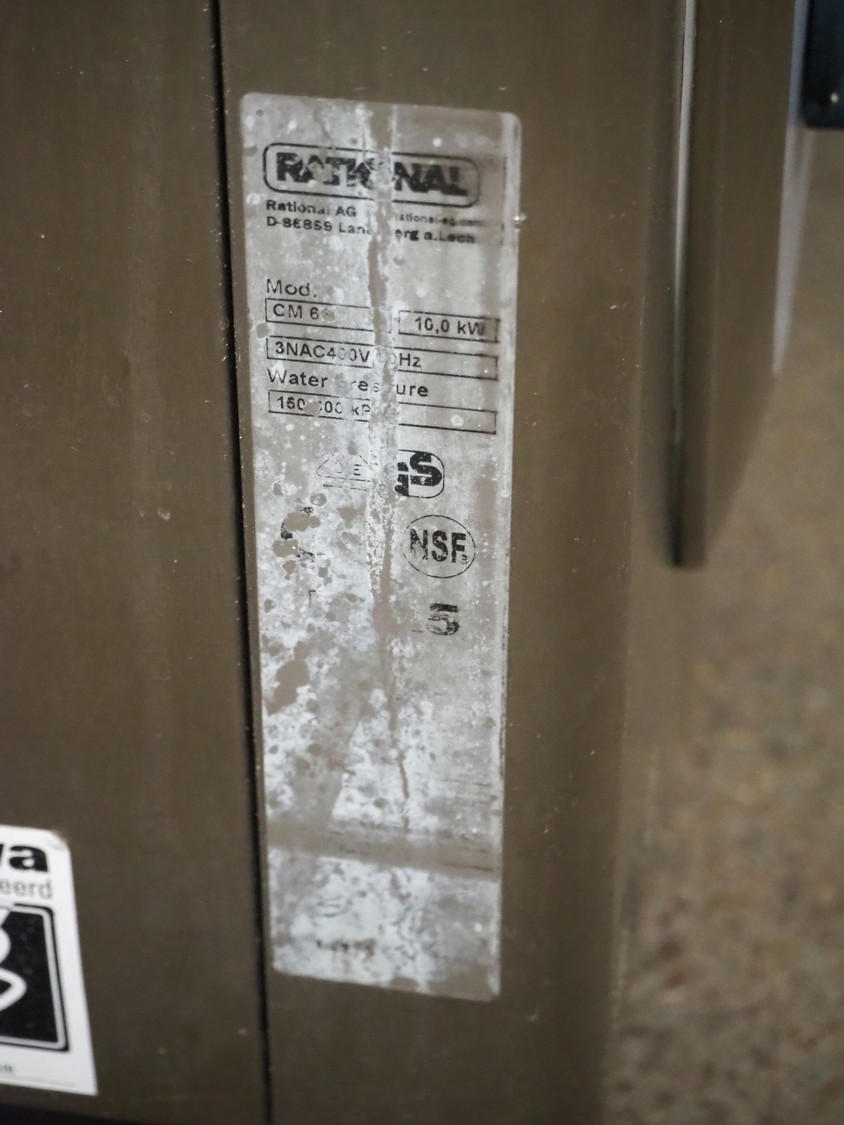 Rational combi steamer, type: CM 61, 400 V, 50/60 Hz, 10 kW, 6 floor, dimensions each floor: 550 mm x 330 mm, total dimensions: 860 mm x 800 mm x 820 mm.