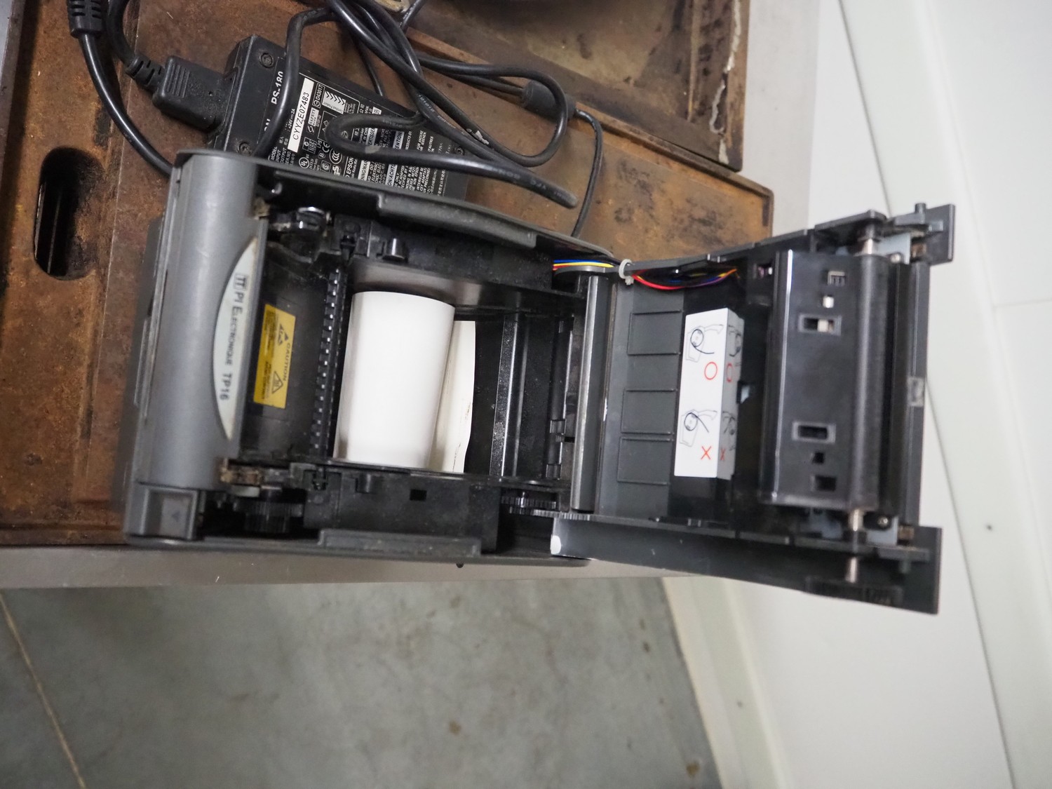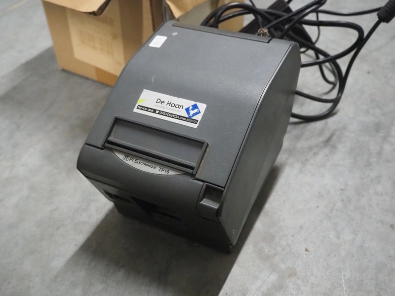 PI Electronique label printer, type: TP16A, number: 109050501175, dimensions: 215 mm x 140 mm x 150 mm.